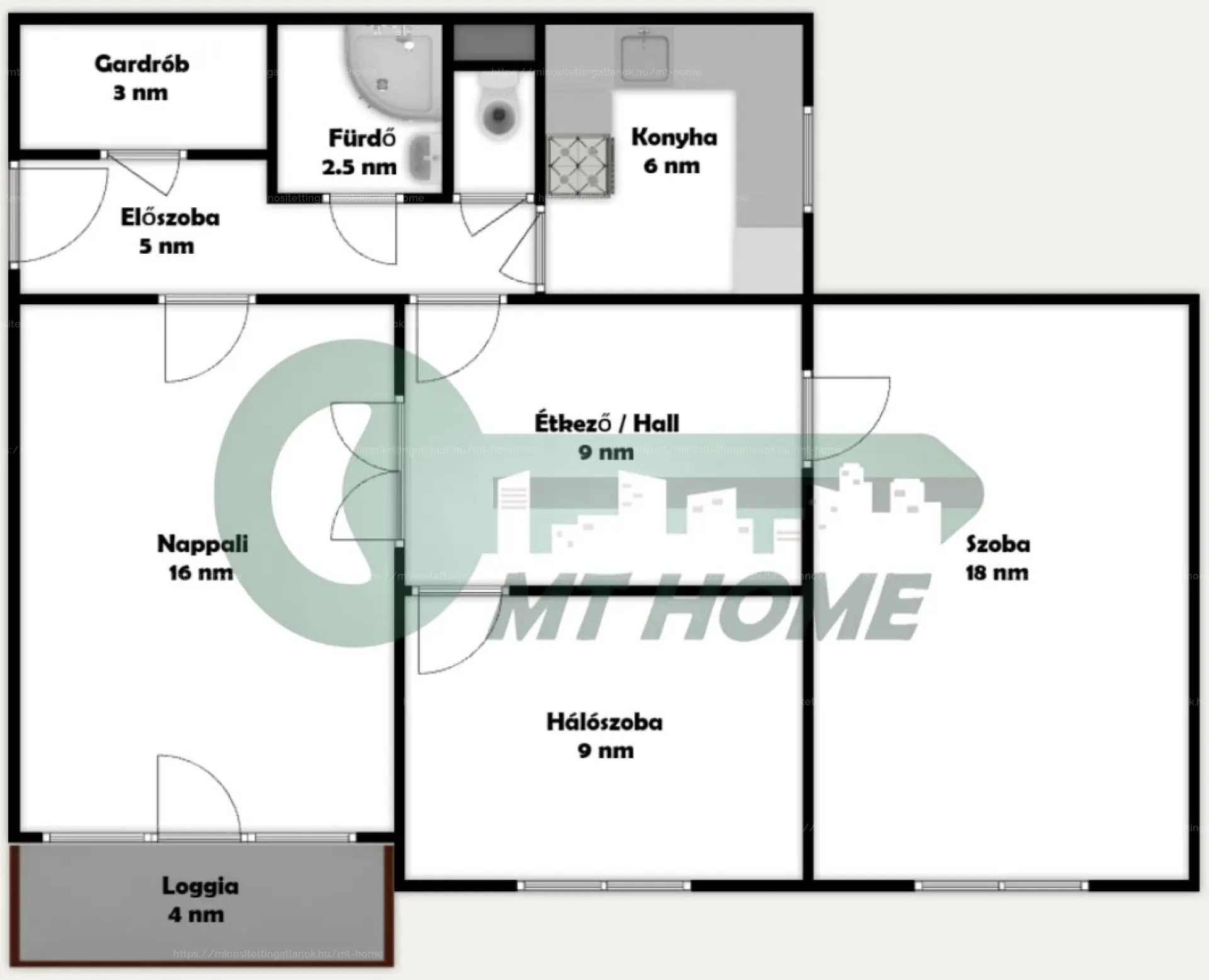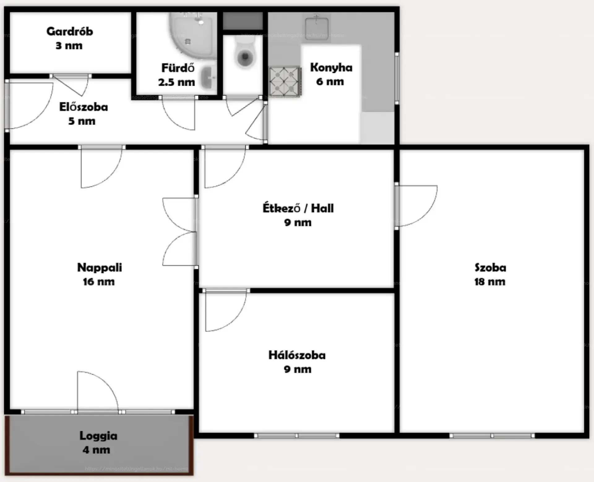 - Szobákban laminált parketta, a többi helyiségben járólap (gardrób kivételével)