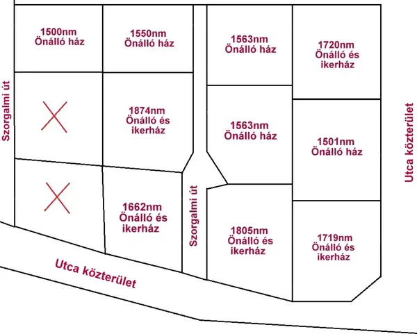 + Beépíthetőség 30%, oldalhatáron álló.