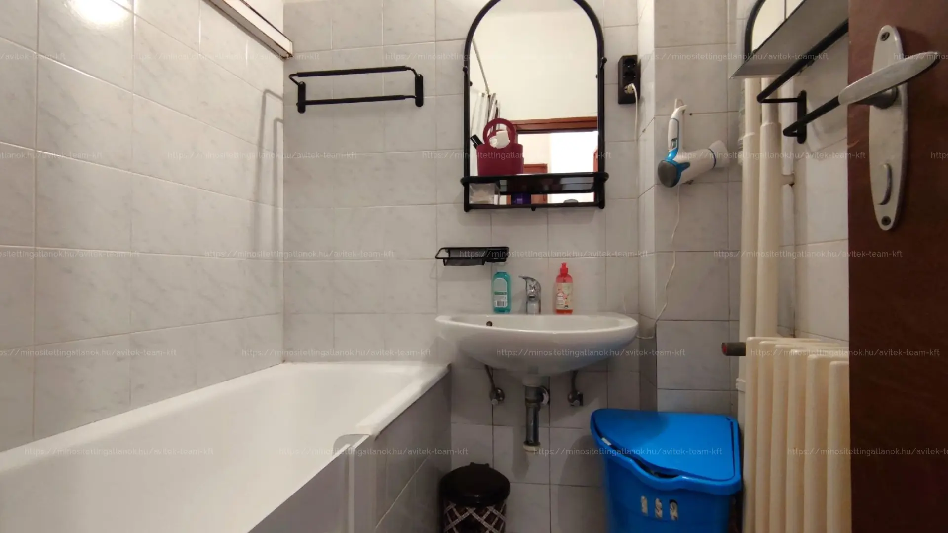 A fürdőszobában kád és mosdó található. Külön wc van, lichthofra szellőzik.