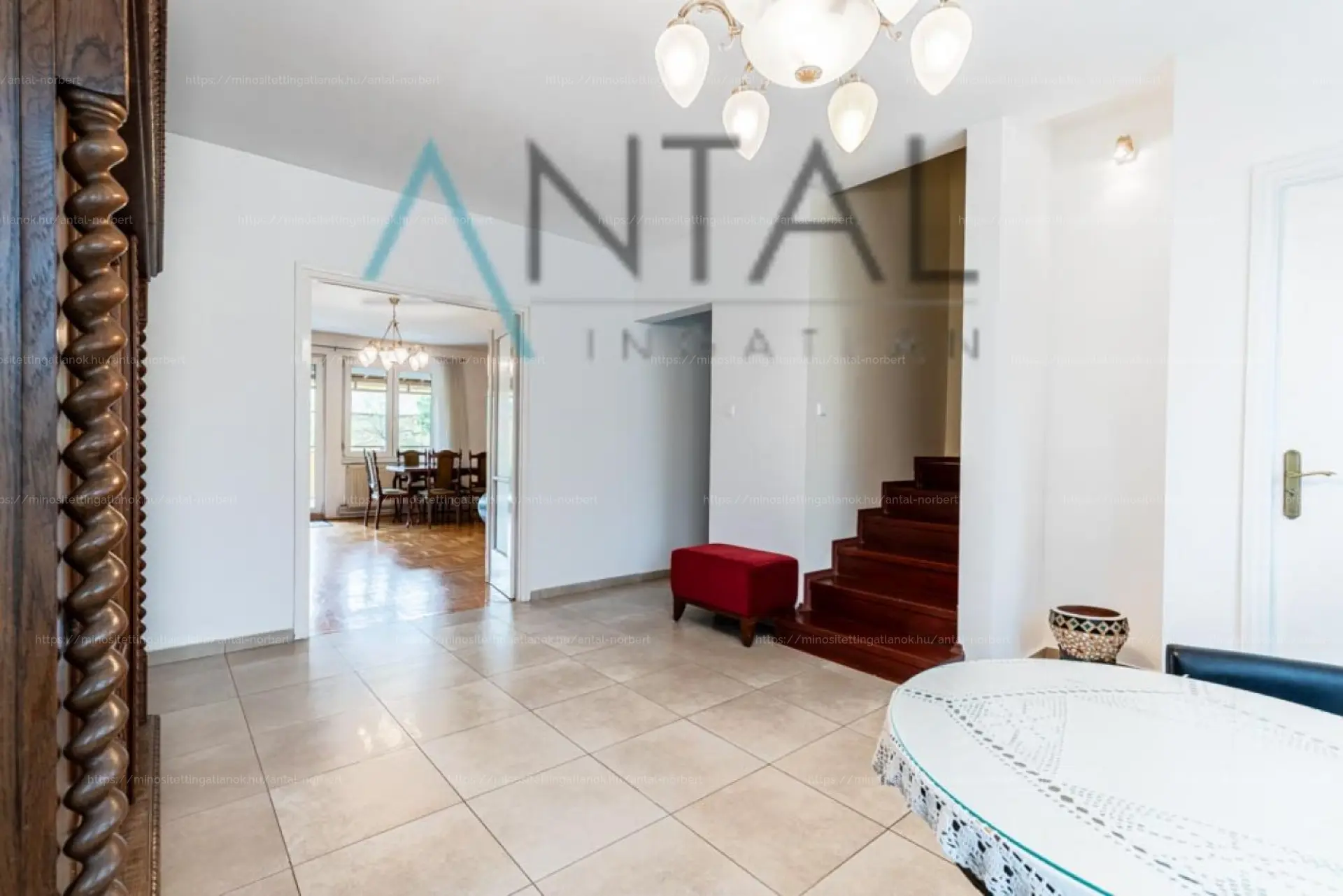 Kiváló helyen van, csendes utcában és tágas, nagy belső terek jellemzik, továbbá hatalmas kert tartozik hozzá.