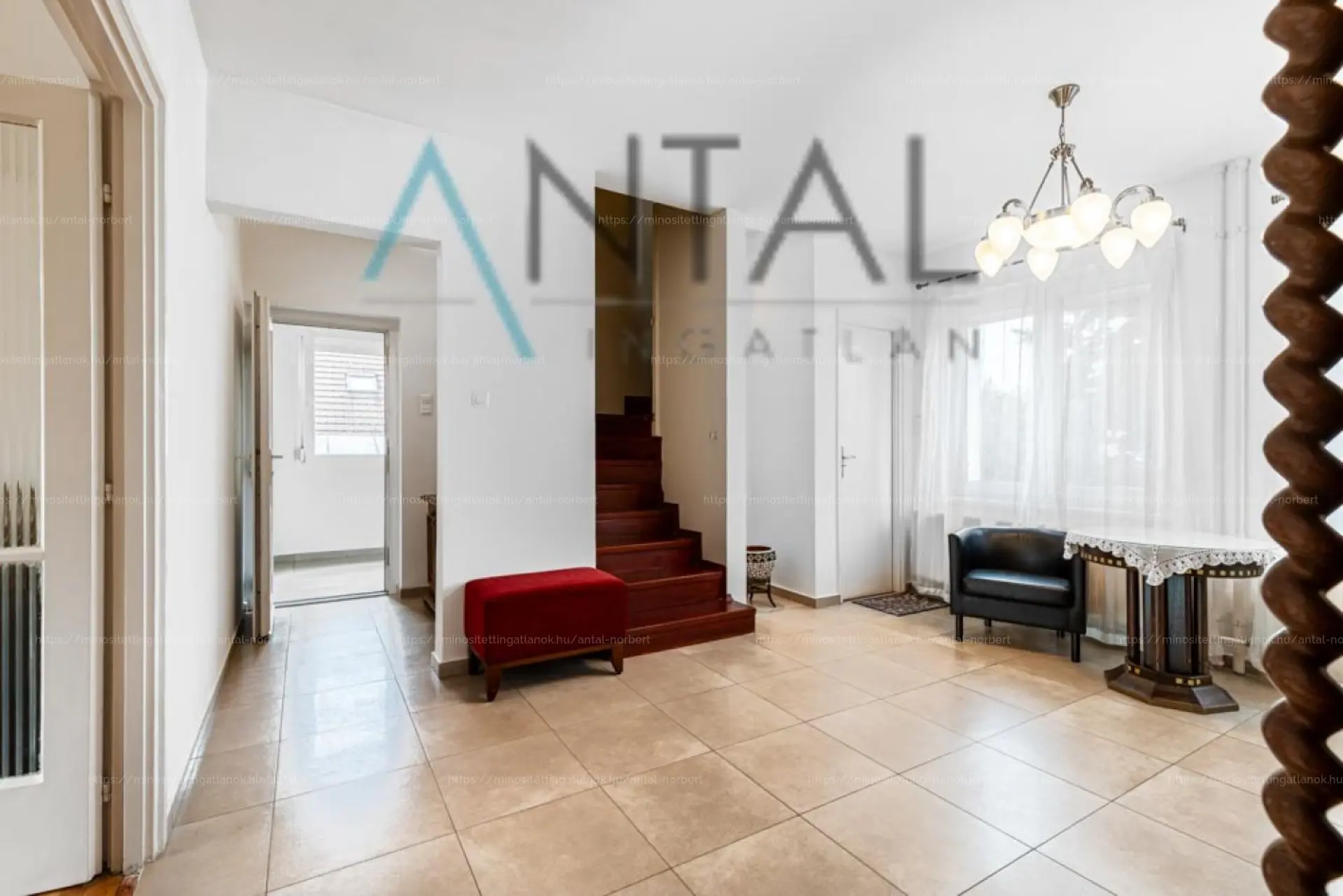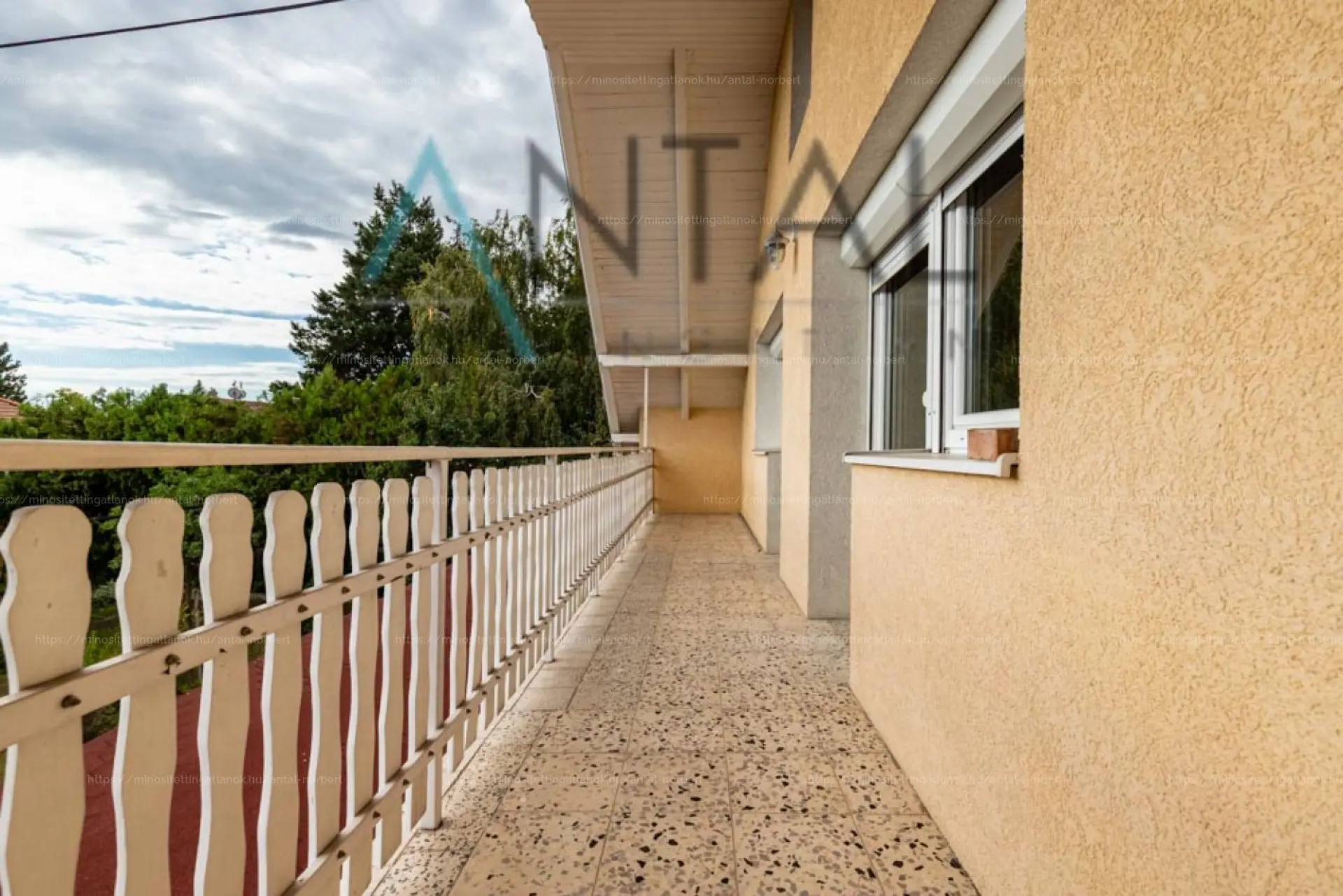 A 1990-ben épült családi ház 264 m2 hasznos alapterületet és 38 m2 teraszt kínál egy 897 m2-es telken, melléképülettel.