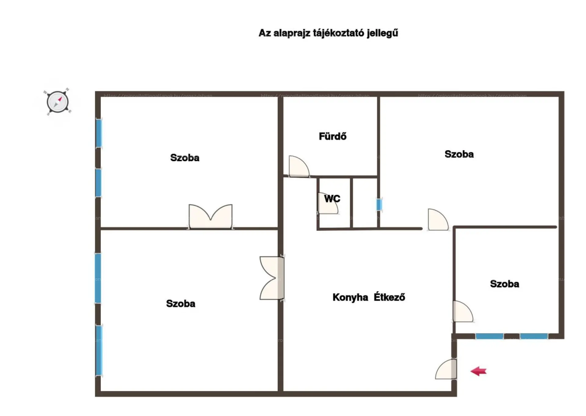 Szobák: 4 szoba plusz tágas étkezős konyha