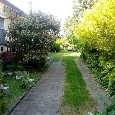 Rendezett udvarral , nagy kertel rendelkezik, a kertben termő gyümölcsfák és egy működő kút található.