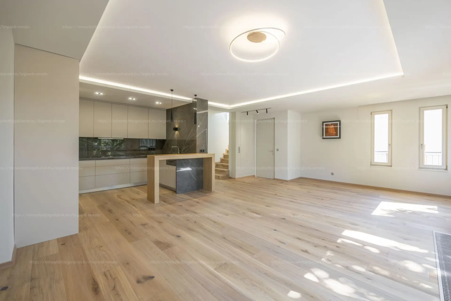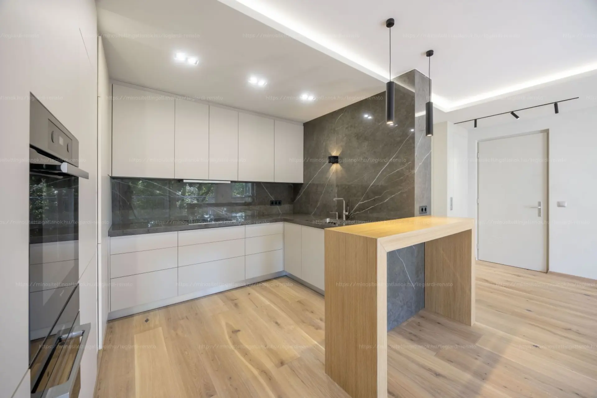 A lakás jelenleg a felújítás utolsó fázisában van, egyedi belsőépítészeti tervek alapján újul meg, prémium anyagok felhasználásával.