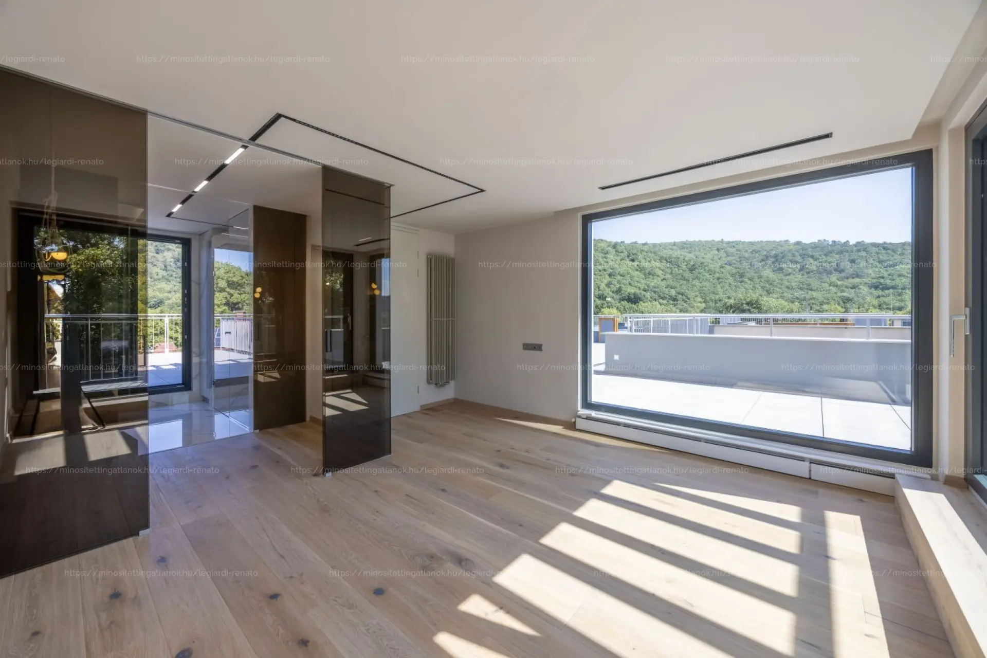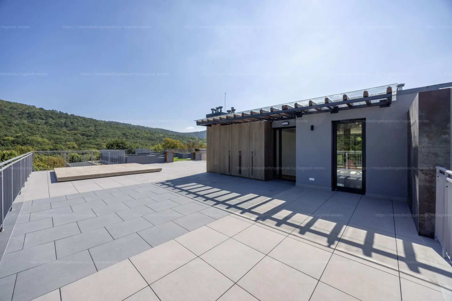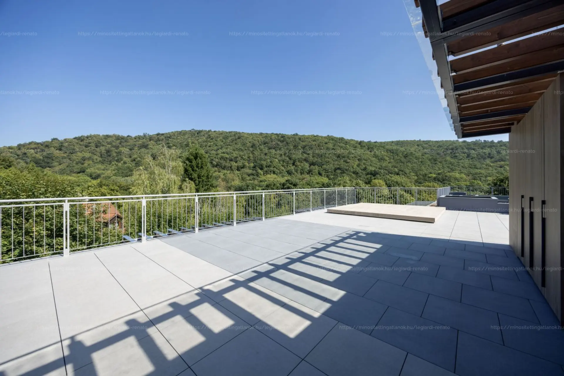 A szülői lakrész (master bedroom) a 36 m2-es felső szinten kapott helyet, amely saját fürdővel és üvegfalakkal határolt design gardróbbal rendelkezik. Innen közvetlen kijárat nyílik a hatalmas tetőteraszra, amely egyedülálló panorámát biztosít a Budai-hegyekre. A tetőterasz kialakítása kertként és teraszként egyaránt funkcionál, jelentősen kibővítve az életteret.
