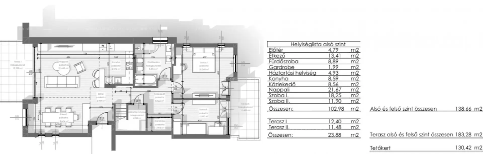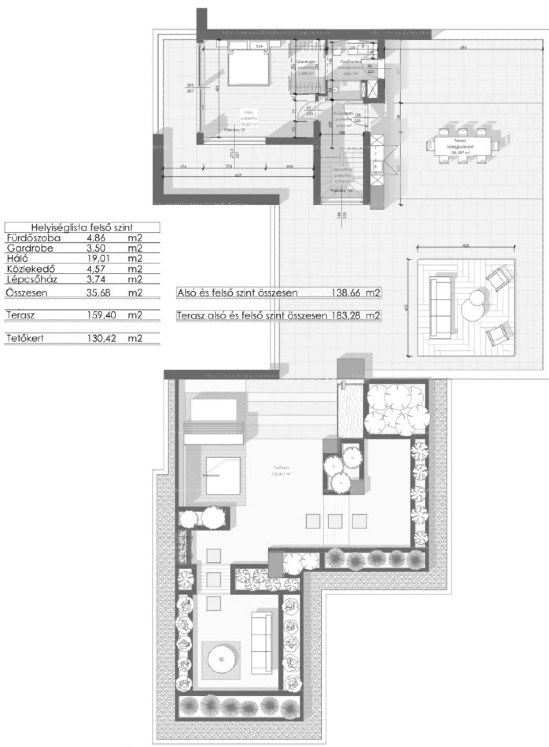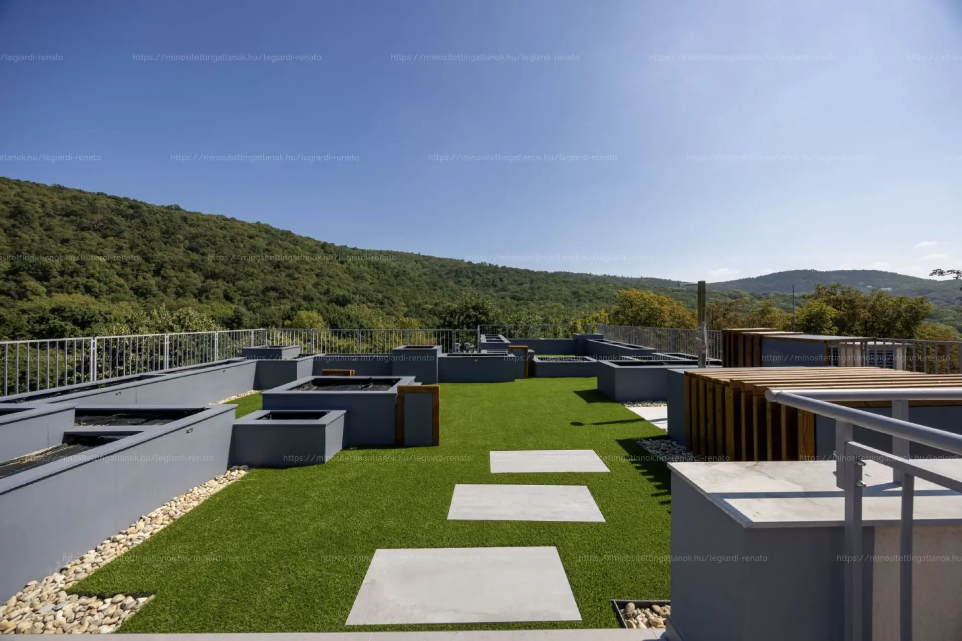 A felső terasz tetőkertje egyedülálló dizájnnal készül.