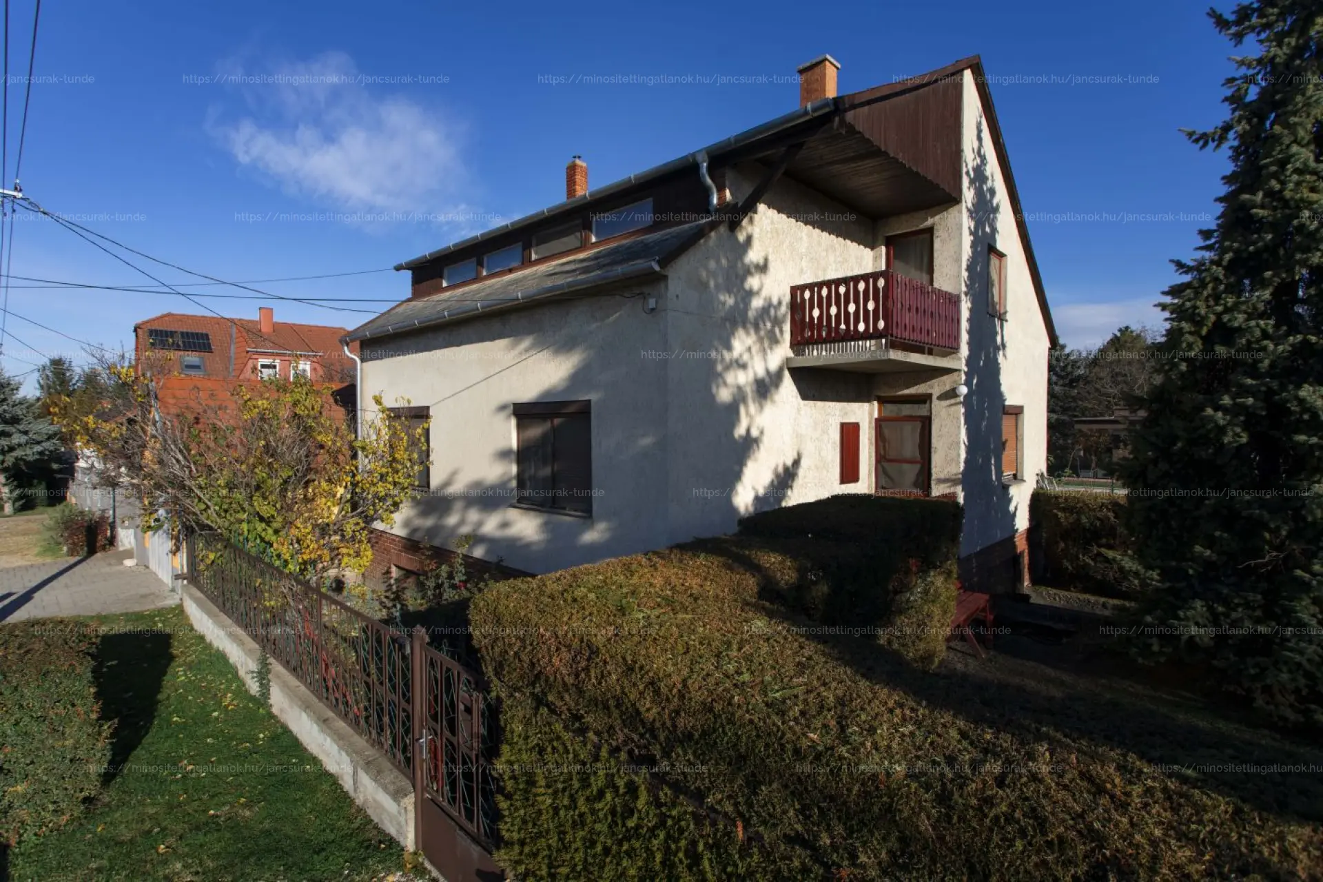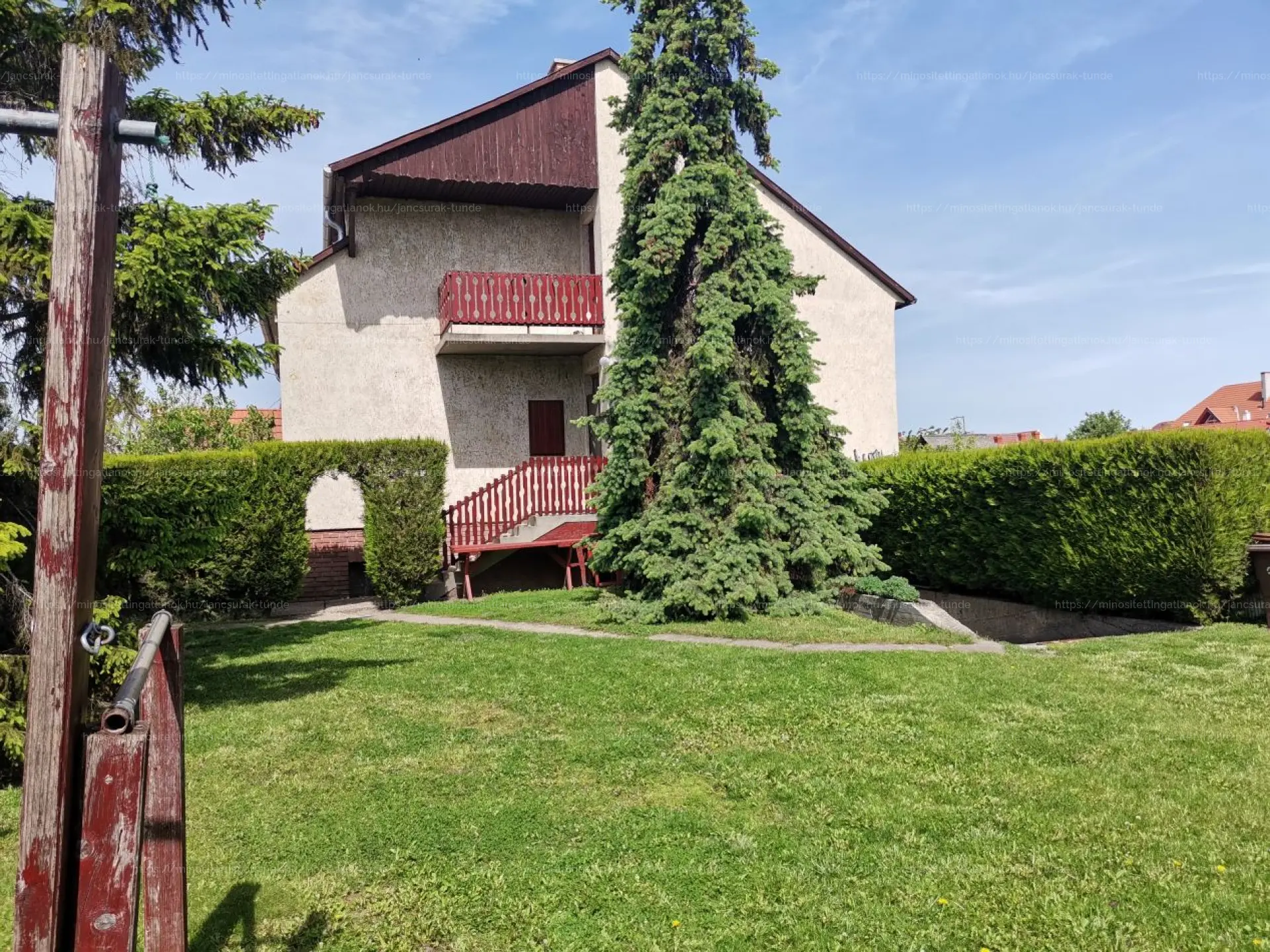 - Alsó szint: 3 szoba, nappali, konyha, fürdőszoba külön mellékhelyiség.