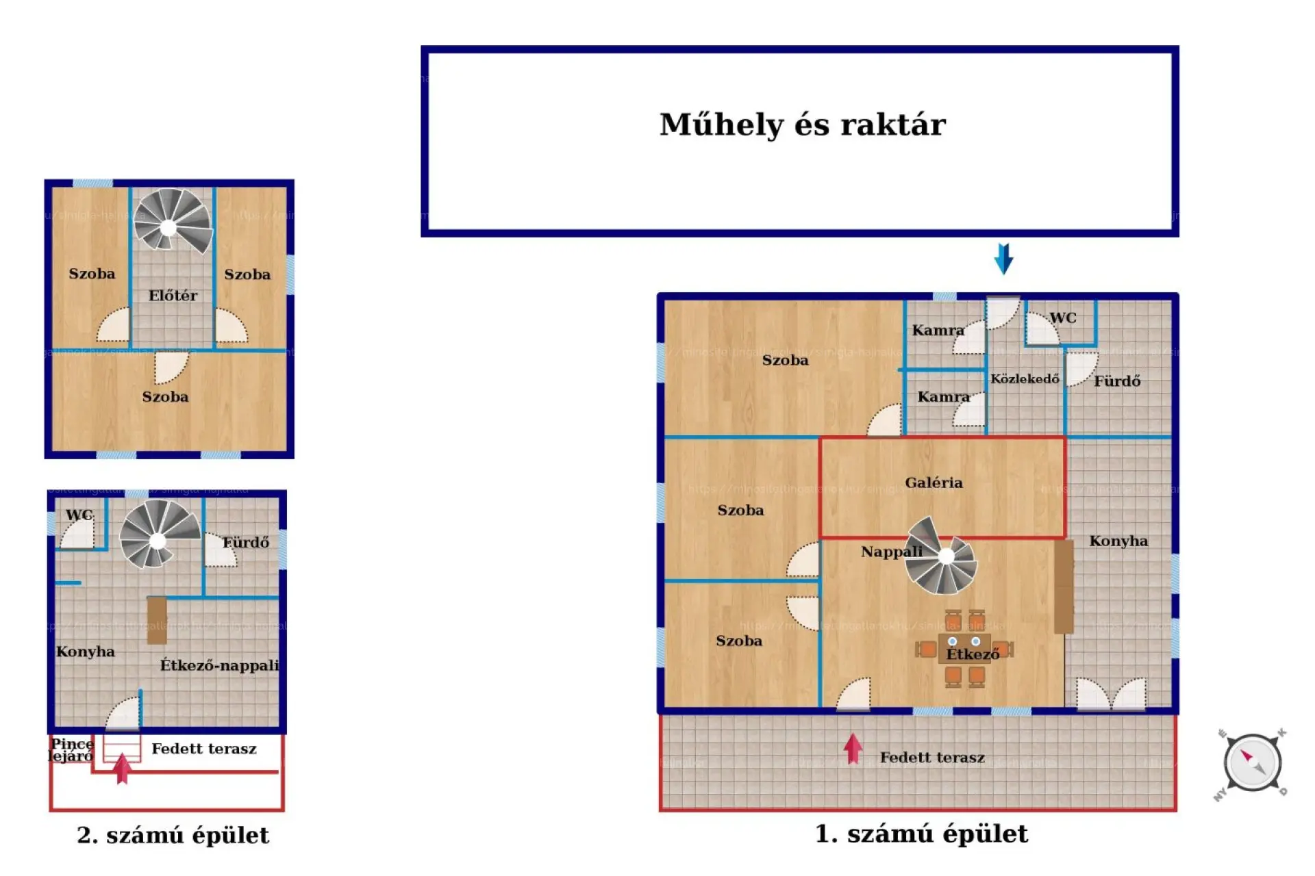 - 1. számú épület nappali + 3 szoba + 20 m2-es galéria