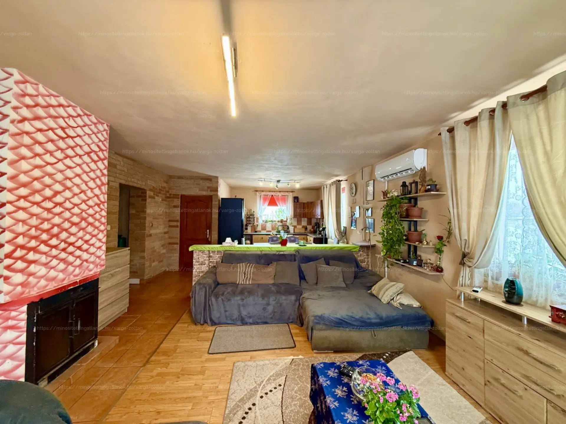 - Fűtés típusa: víztere kandalló, radiátorokkal, hűtő-fűtó klímák