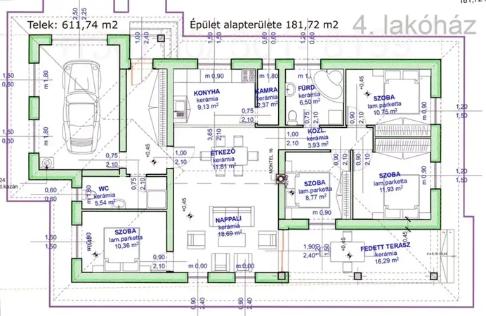 A telek és a ház főbb műszaki paraméterei, jellemzői: