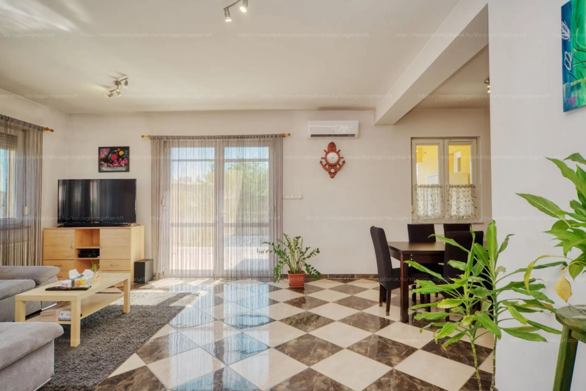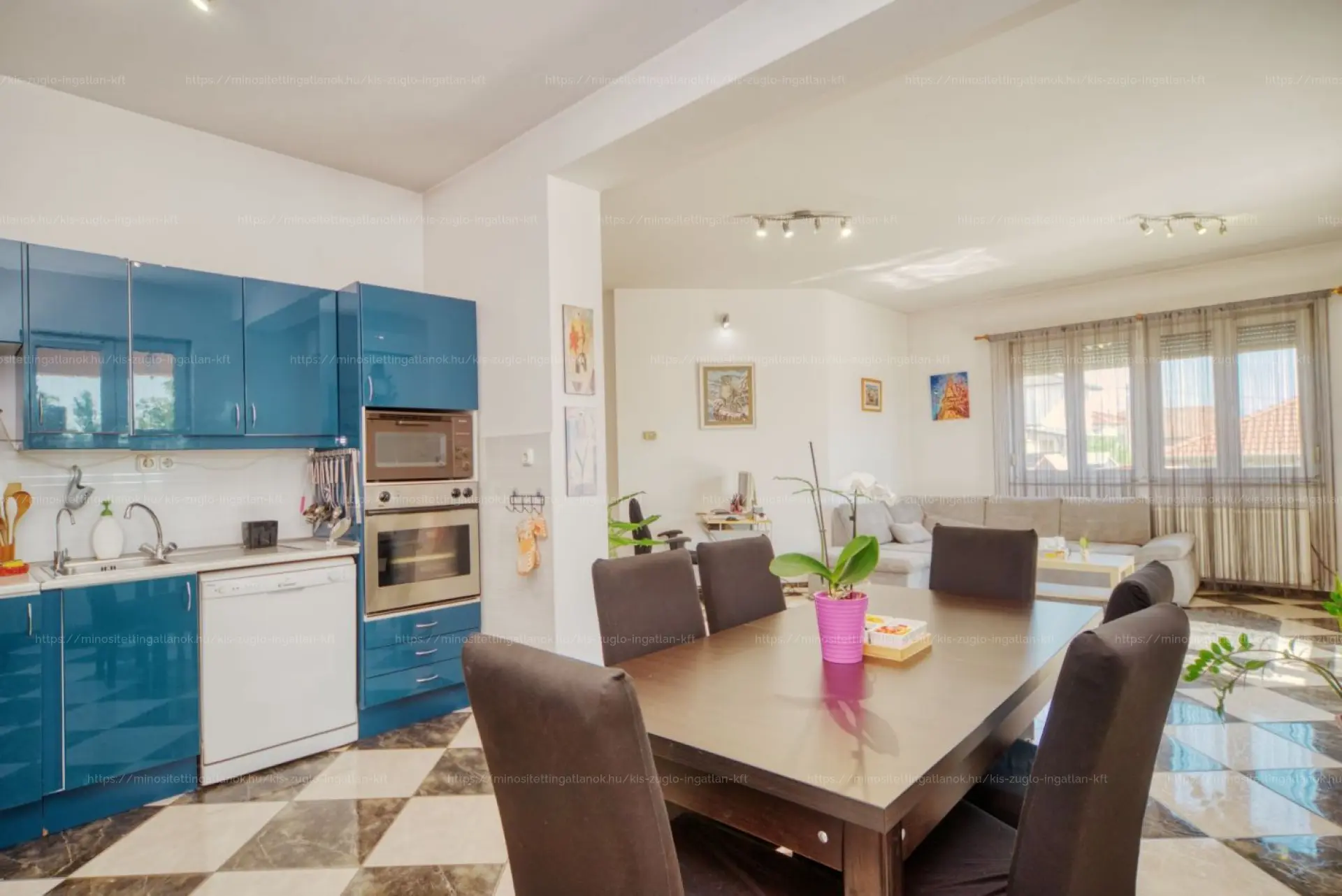 A vételárrészét képezi a beépített gépesített konyhabútor, a beépített előszoba szekrény és minden beépített szekrény, a klíma, és a dupla garázs is.