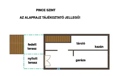 Az épület alatt 72 nm-es pince húzódik, mely tárolásra tökéletesen alkalmas, két autóval a parkolás megoldott, erre a szintre a konyhából belső lépcsőtéren keresztül is le lehet jutni.