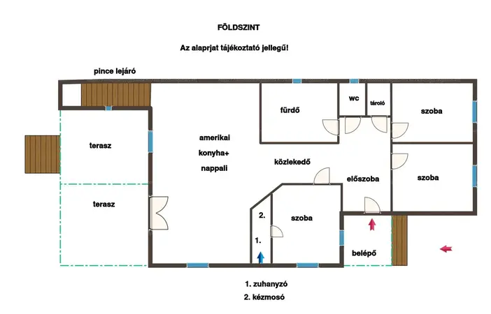 A családi házba belépve hatalmas előszobába érkezünk, a ház központi része az amerikai konyhás nappali 40 nm-es, mely terasz kapcsolatos is.