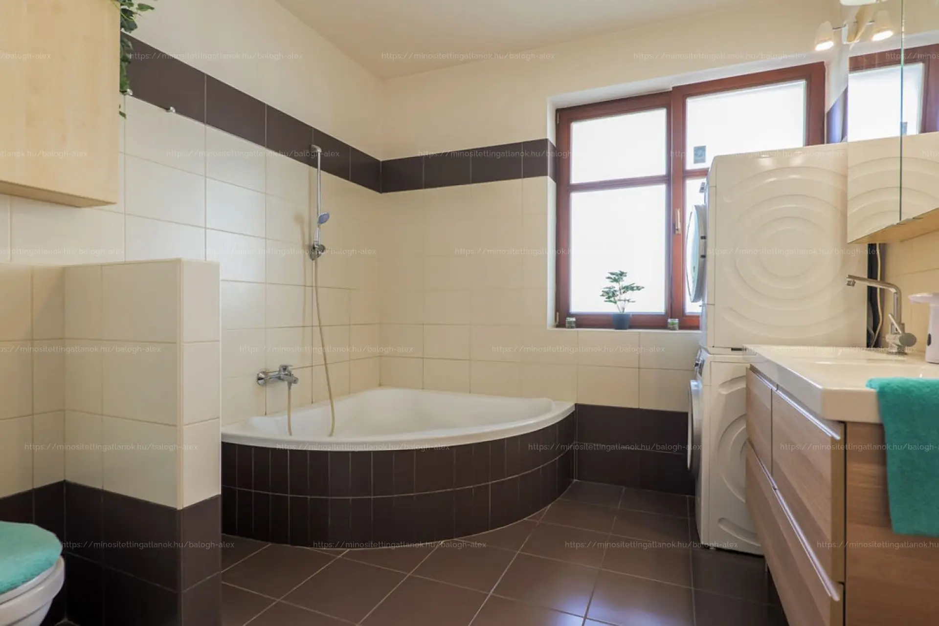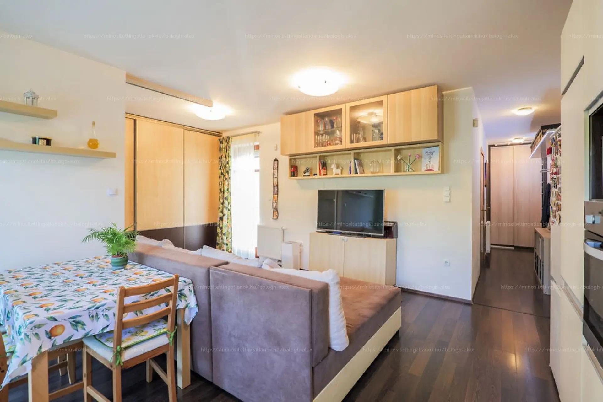 A közös költség 42.000 Ft, amely nemcsak a társasház klasszikus kiadásait – például a felújítási alapot – fedezi, hanem a lakásra vonatkozó átalánydíjat is, amely tartalmazza a hideg- és melegvíz, valamint a fűtés költségeit. Mindhárom fogyasztás mérőórával nyomon követhető, pontos elszámolást ad. A teljes havi fenntartási költség nagyjából 50.000 Ft körül alakul, ami ebben a kategóriában kifejezetten kedvező.