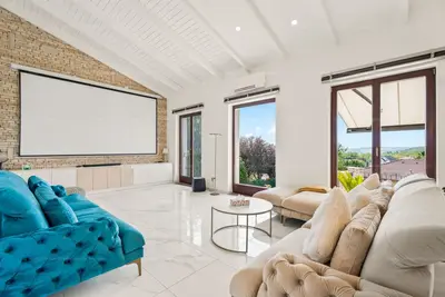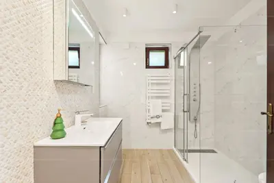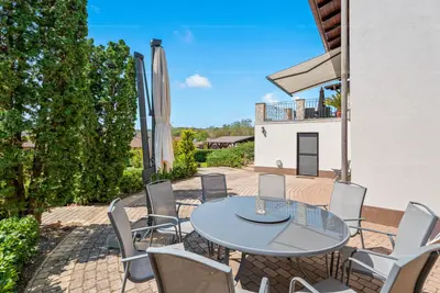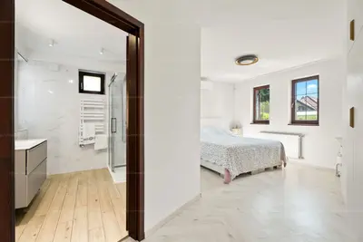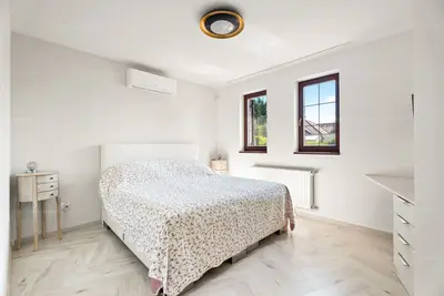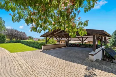 A beltéri, közel 100 m²-es medence és a hozzá kapcsolódó napozóterasz teszi igazán egyedivé és exkluzívvá ezt a házat. A modern gépészeti megoldások (13 kW napelem, hőszivattyús klímák, Hoval fűtési rendszer) nemcsak kényelmes, hanem energiahatékony otthont is biztosítanak.