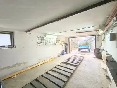 A házhoz tartozik egy dupla beállásos, aknás, csempézett garázs, amely korábban autószerelő műhelyként működött, így az erre a tevékenységre továbbra is alkalmas, emellett külön előnyt jelent az ipari áram megléte.