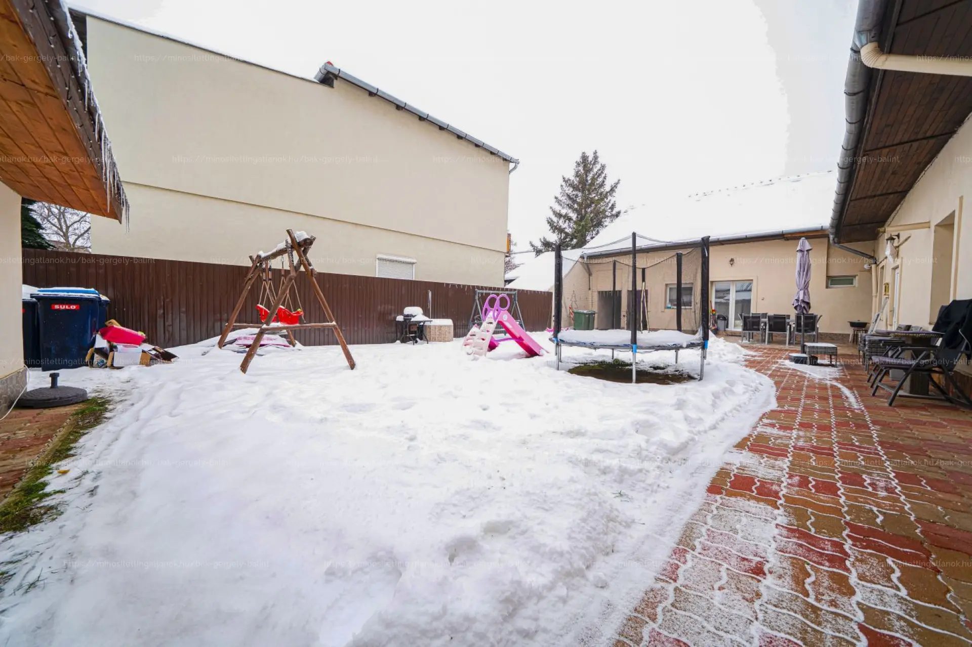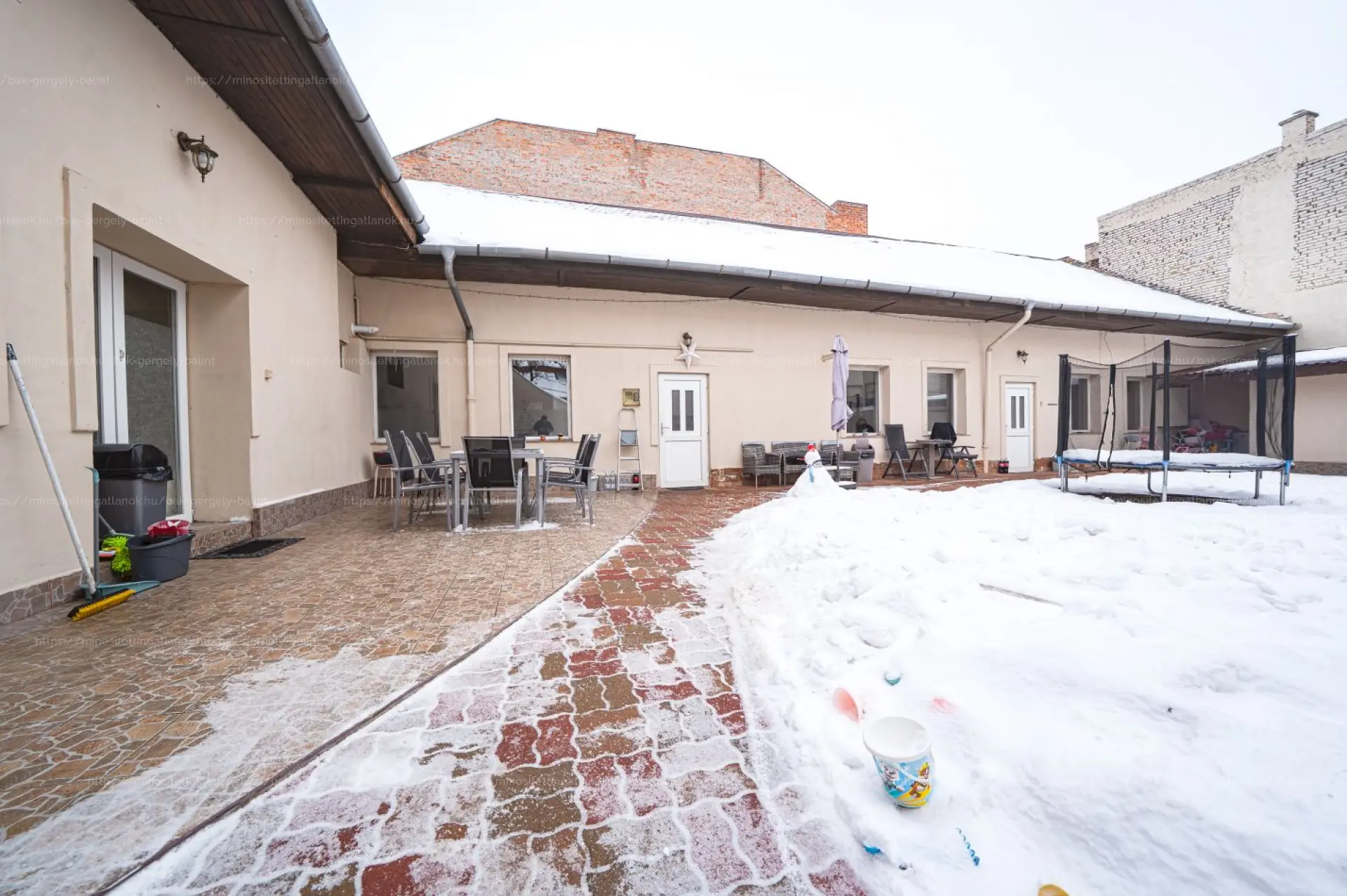 Az udvar rendezett, térkövezett, a szomszédoktól szeparált, így nyugodt, intim életteret biztosít a mindennapokban.