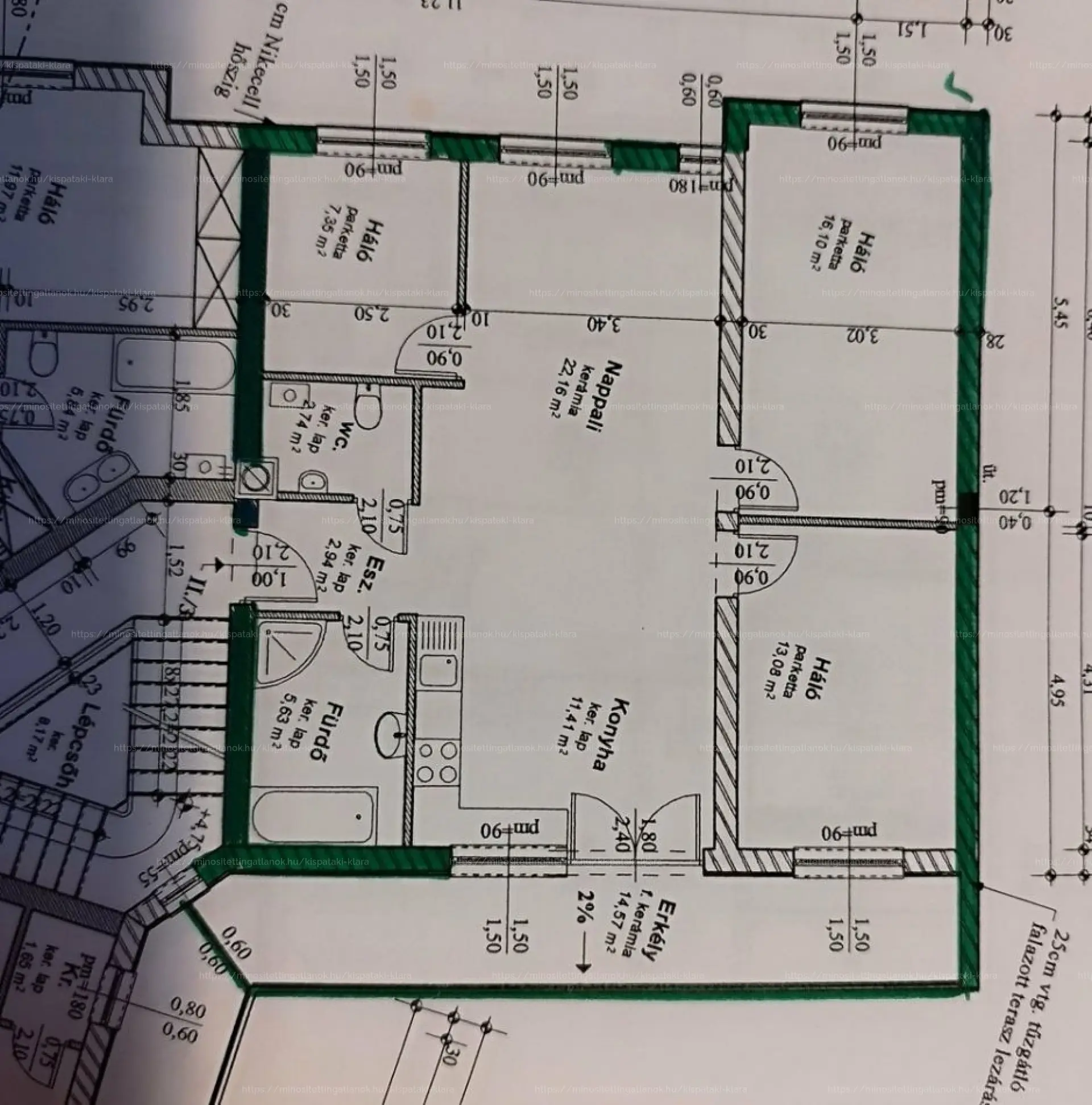 A nappaliból nyílik 3 külön bejáratú szoba. Méretüket tekintve optimális méretűek, jól bútorozhatók. Burkolataik laminált padló.