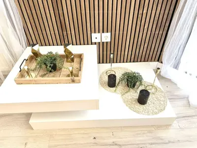 A felújítás során a LEGKORSZERŰBB KLÍMARENDSZER került beépítésre, így az év minden szakában kellemes hőmérsékletet biztosít. Az OPTIMÁLIS HARMÓNIA érdekében beépített bútorok, szabályozható világítással ellátott AKUSZTIKUS PANELEK és luxus 3D tapéták kerültek felhasználásra. Az ÚJ PARKETTA és a kiemelkedő minőségű világítás teszi a lakást igazán különlegessé.