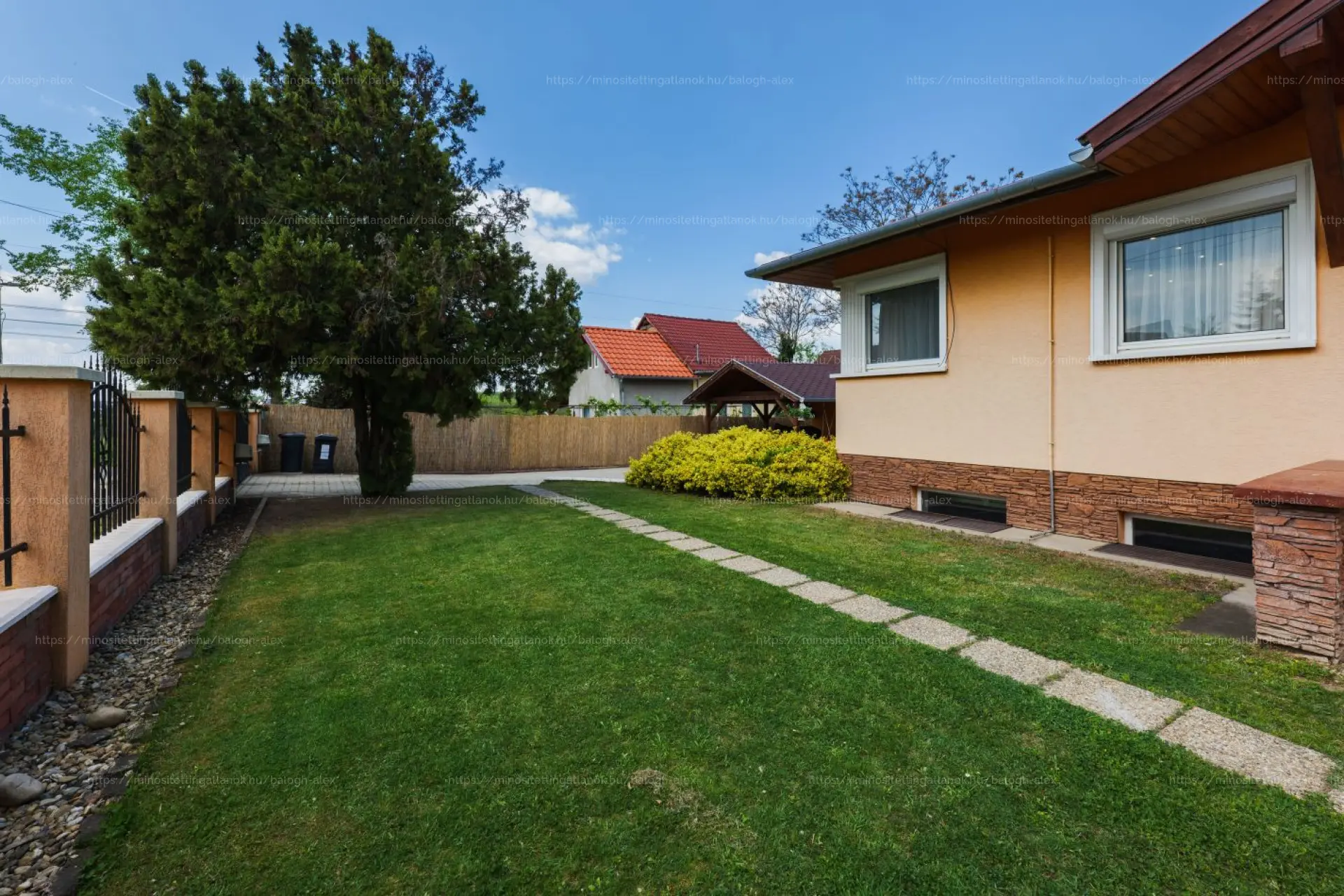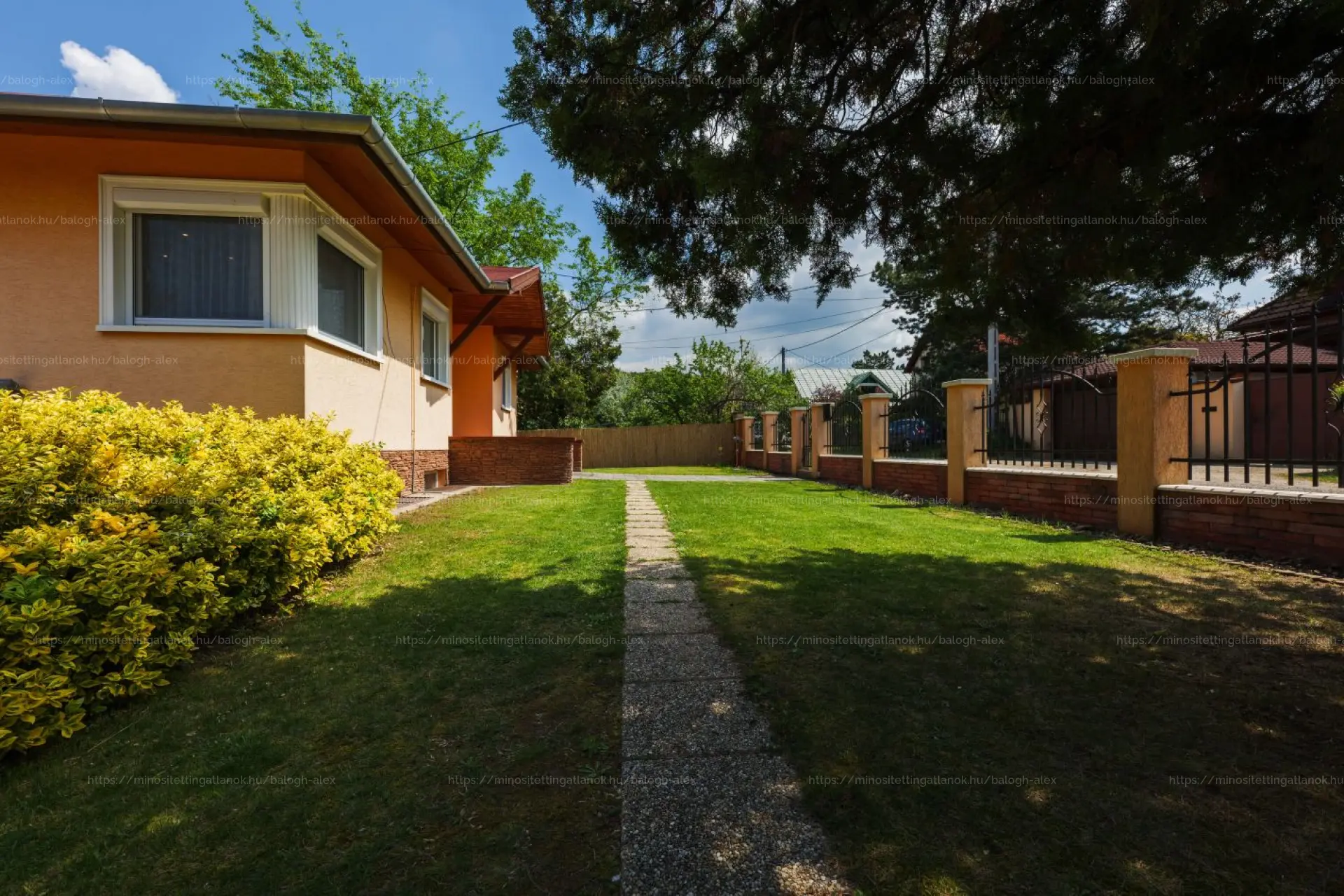 A 708 m²-es, gondozott kert igazi zöld oázis, ahol a gyerekek szabadon játszhatnak, de akár konyhakertet vagy virágágyást is kialakíthat az új tulajdonos. Az udvaron fedett autóbeálló is van, mögötte egy nagyméretű szerszámos tároló, ami ideális minden kerti eszköz vagy sportszer elhelyezésére. A kert sarkában egy fedett szaletli is található vízkiállással, amely tökéletes helyszíne lehet hétvégi grill partiknak, családi vagy baráti összejöveteleknek.