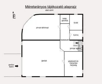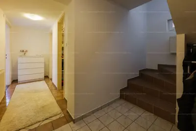 A 99 m²-es alsó szint ennél is több lehetőséget rejt: itt található a nagy méretű, többfunkciós „dühöngő” (jelenleg játszószoba, de lehet dolgozó, hobbiszoba vagy edzőterem is), valamint a kamra, a gépészeti helyiség és az alsó fürdőszoba. Ezek a helyiségek félszuterén jellegűek, szárazak, nem áznak, nem vizesednek, így hosszú távon is gondtalanul használhatók. Az alsó szinten található továbbá a nagyméretű garázs is, amely jelenleg egy nagy SUV-nek ad kényelmes helyet, de akár két közepes méretű autó is gond nélkül elfér egymás mellett.