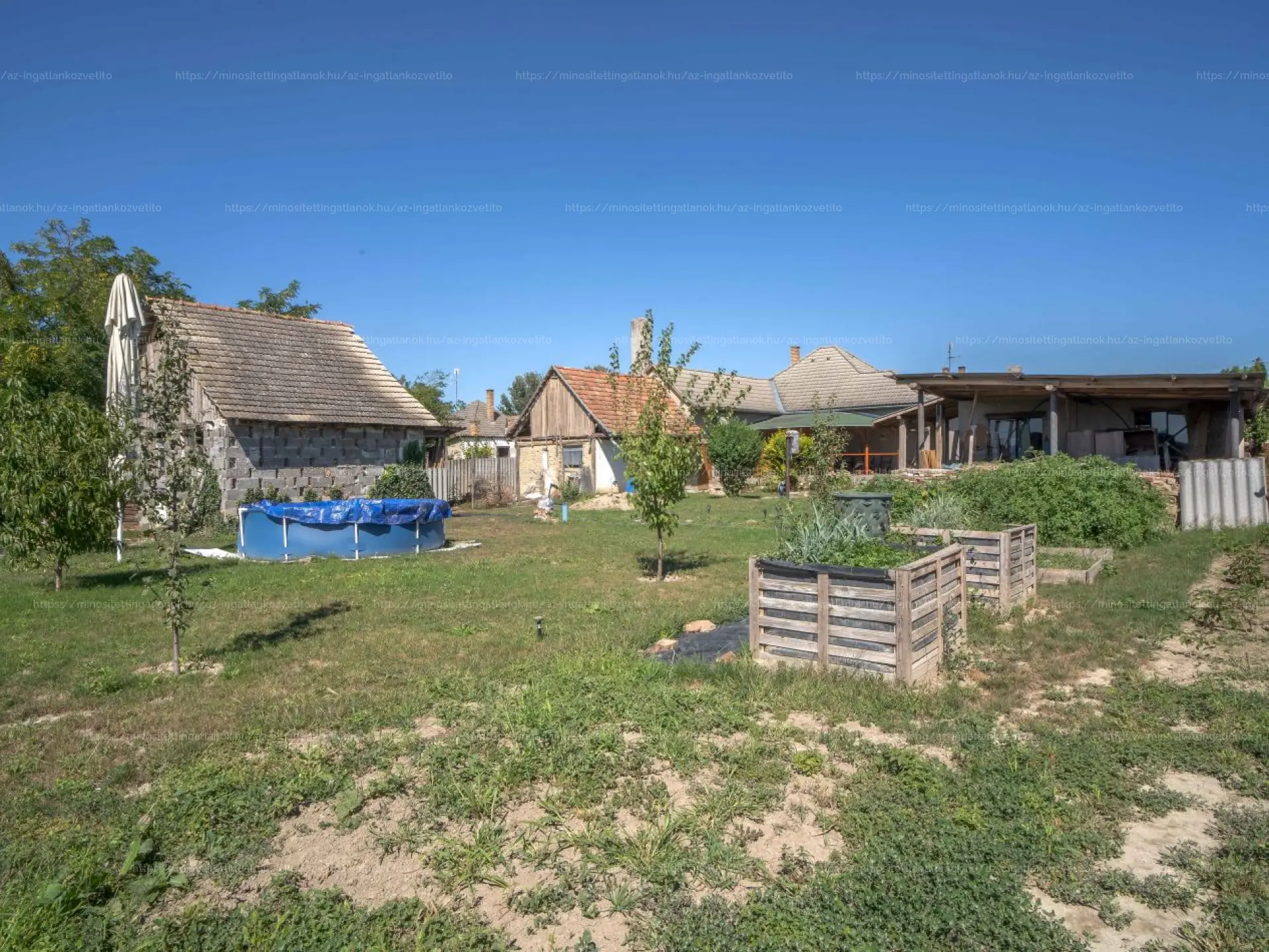 Az ingatlan 1241 m2-es telken fekszik. A térérzet nagyon jó, annak ellenére, hogy 100 m2-es lakrész, hatalmas garázs, varróműhely, tárolók, istálló is megtalálható. Tehát minden melléképület rendelkezésre áll.