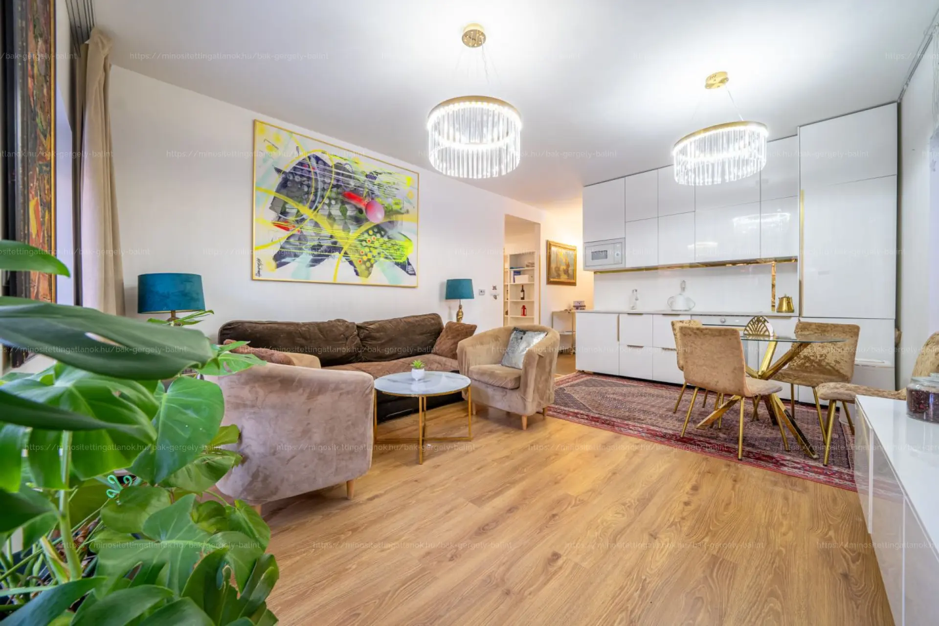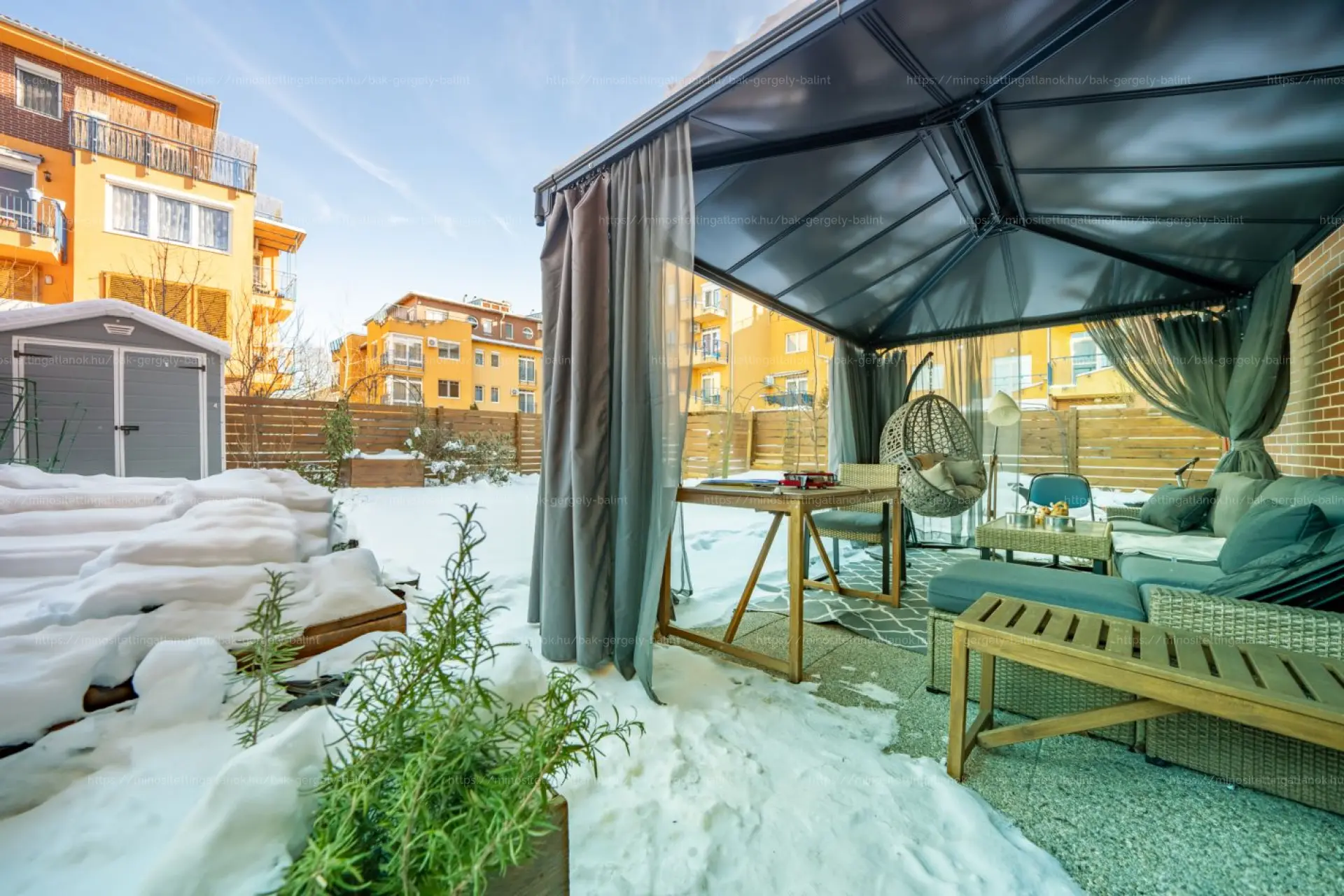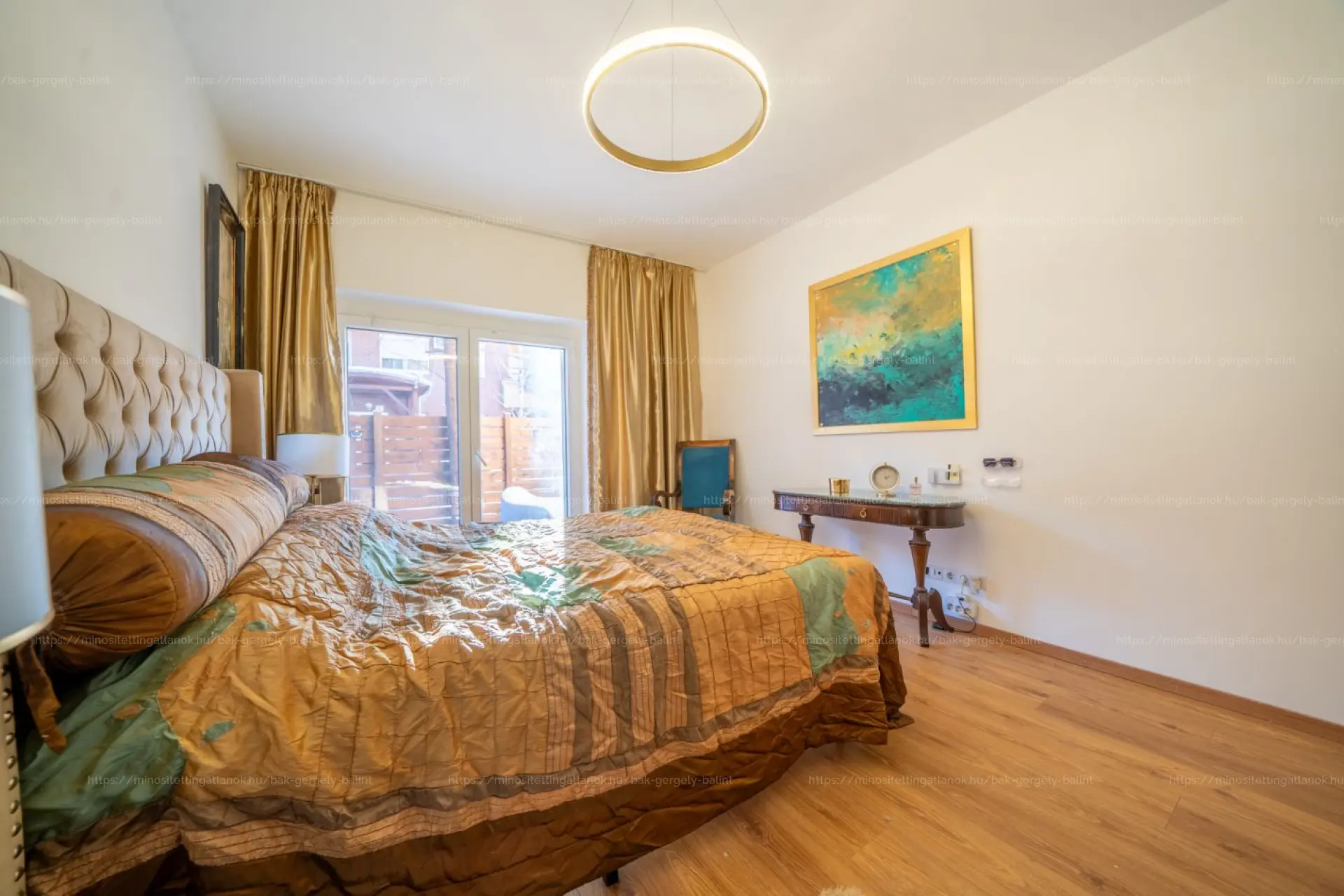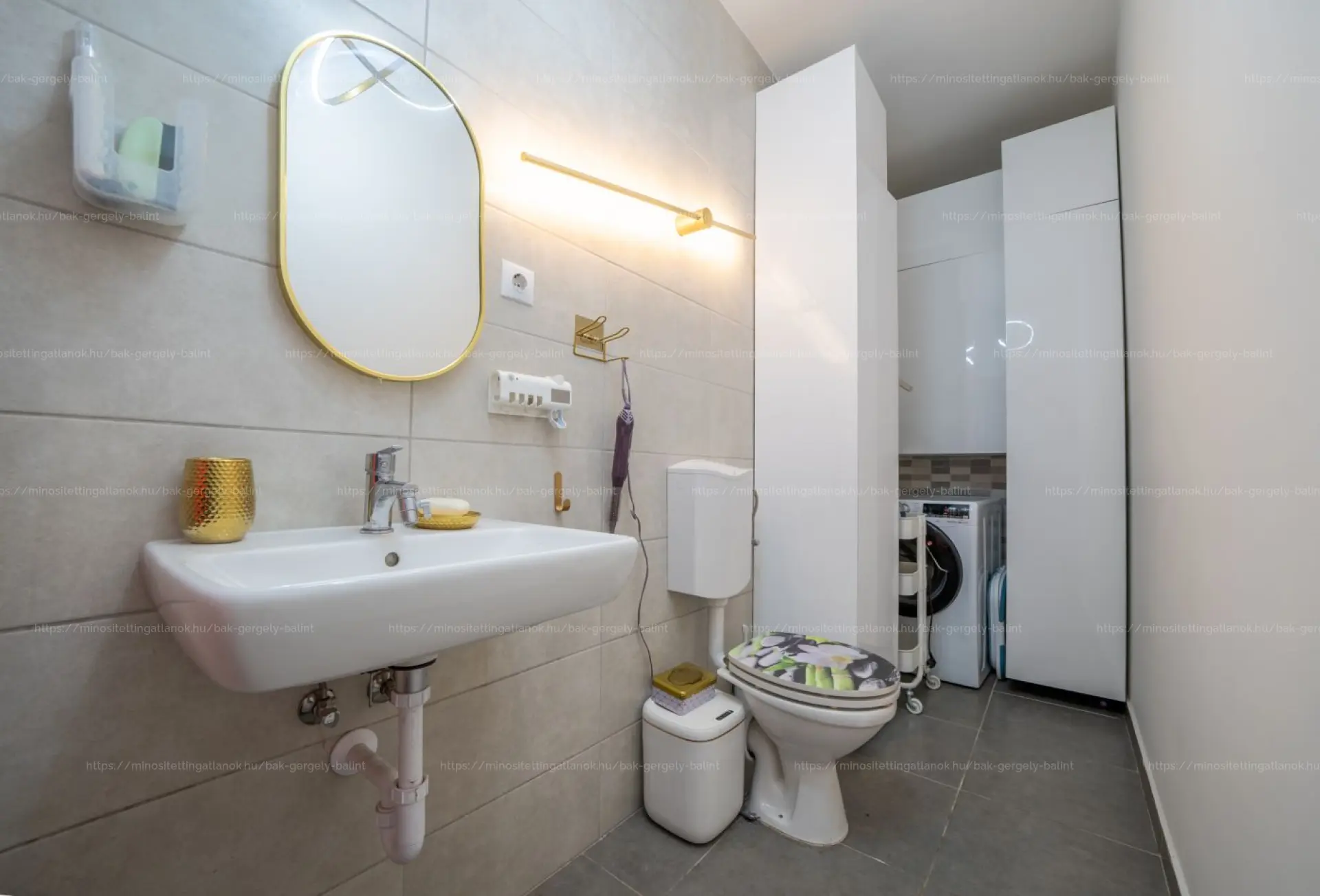 Az ingatlan amerikai konyhás nappalival, külön hálószobával és gyerekszobával rendelkezik, valamint gardrób, fürdőszoba és két önálló WC is szolgálja a kényelmet. A praktikus elrendezés jól elkülöníti a közösségi és a privát tereket, a kertkapcsolat pedig valódi pluszt ad a mindennapokhoz.