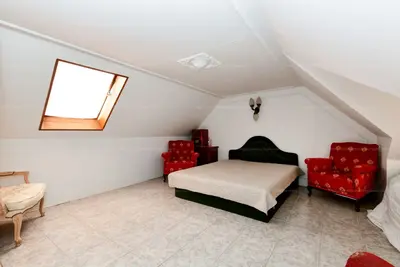 Tetőtérben (hasznos alapterület 30 m²): hálószoba, átjárószoba beépített szekrényekkel, galériás hálórész, dolgozószoba gardróbhelyiséggel, kádas fürdőszoba.