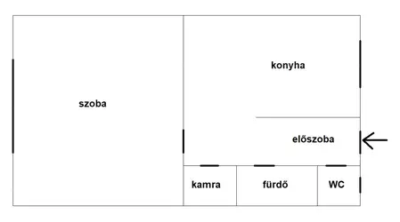 ✅ A lakás tágas szoba kialakítású, ablakos étkezőkonyha, kamra, WC-zuhanyzós fürdő és előszoba rendelkezik egy kellemes elrendezéssel.