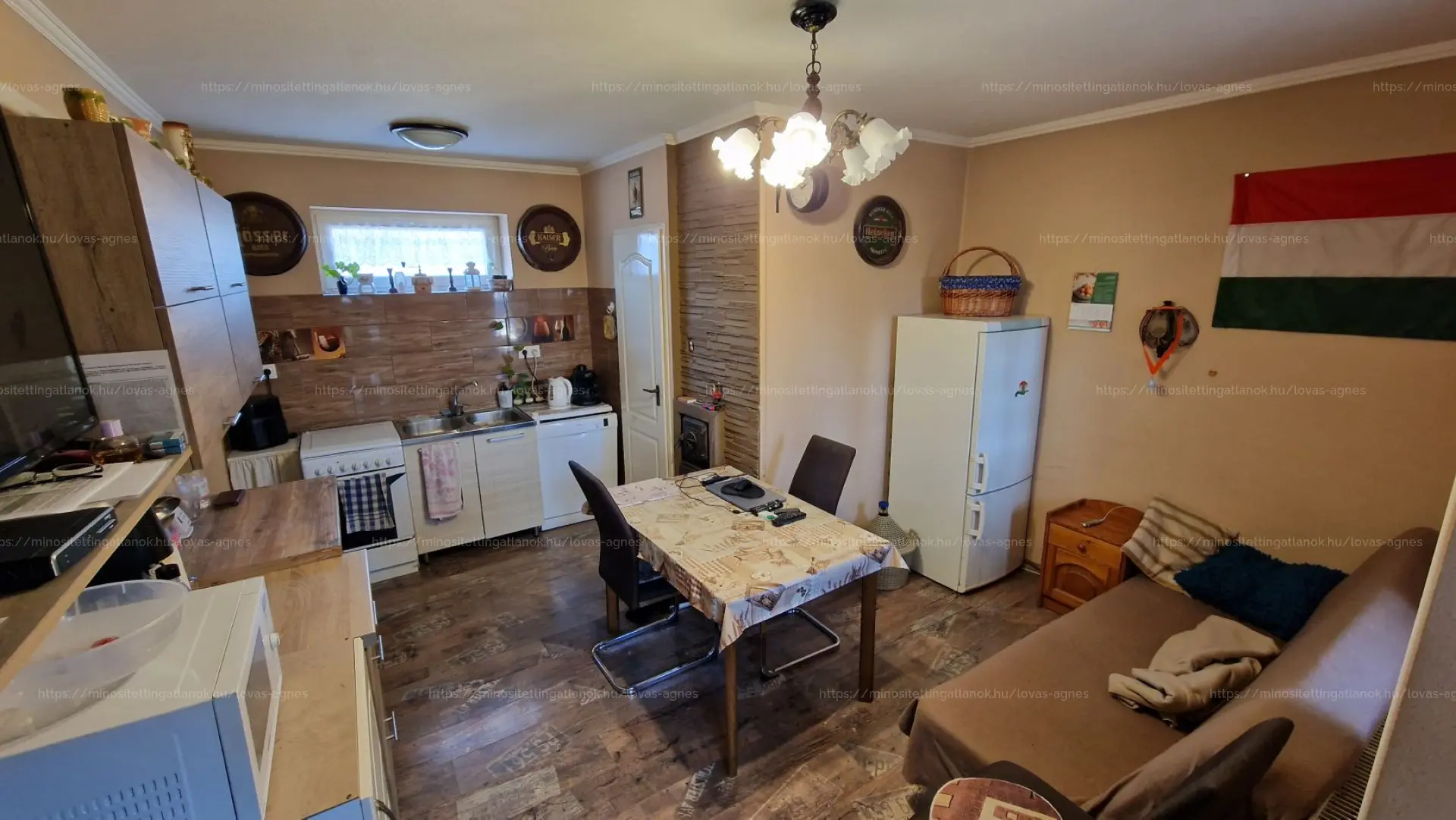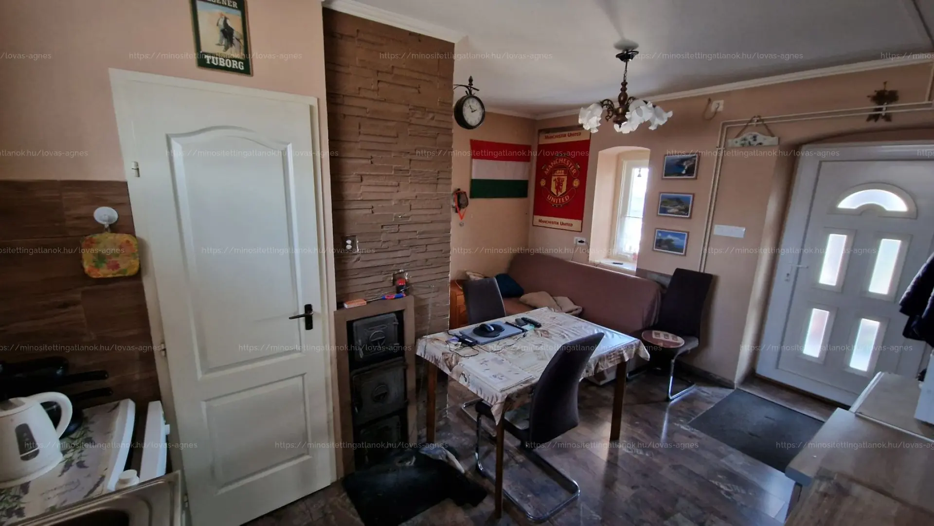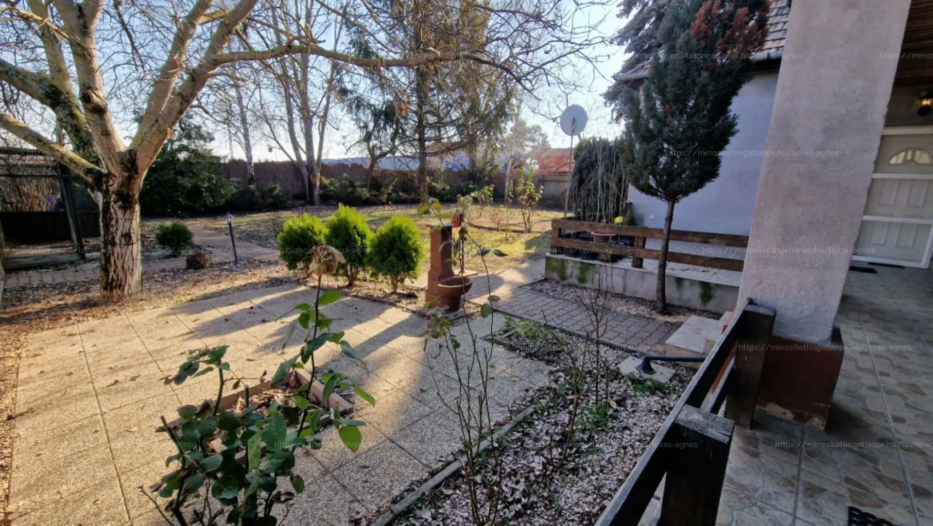 A 30.000m2-es gyümölcsöshöz tartozik egy 100m2-es lakható ingatlan is, melynek vízellátását fúrt kút látja el, és 15 m2-es betonozott emésztő gondoskodik a szennyvíz elvezetéséről. Gázcirkó és vegyestüzelésű kazán + hűtő-fűtő klíma áll rendelkezésre a felfűtésre, melegvizet a ház egyik felében gázcirkó biztosítja, másik felében villanybojler. Az ingatlan két bejárattal rendelkezik és a jó idő beköszöntével kap egy külső fehér festést is. Jelenlegi felosztása: 4 hálószoba, nappali, 2 fürdőszoba, konyha, spejz. Kicsi átalakítással a ház első felében kialakítható még egy konyha így 2 külön lakásként is használható. A házhoz tartoznak még állattartásra is alkalmas melléképületek, saját kertje van, ami a nyugodt pihenést biztosítja, gépjármű parkolására 2 állásos garázs áll rendelkezésre. A ház vegyes falazatú, gondozott, tisztasági festést követően költözhető állapotú.
