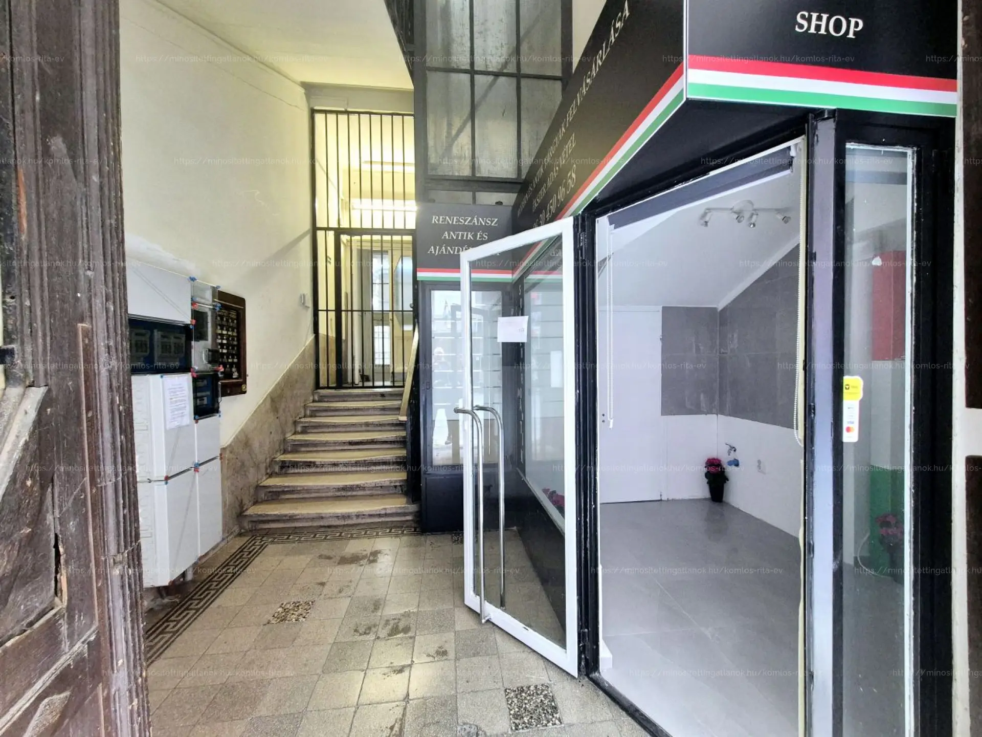 2 utcai és egy, az ingatlan mellett, a lépcsőházban található vitrinnel rendelkezik, így tökéletes üzletnek, ajándékboltnak, akár irodának is.