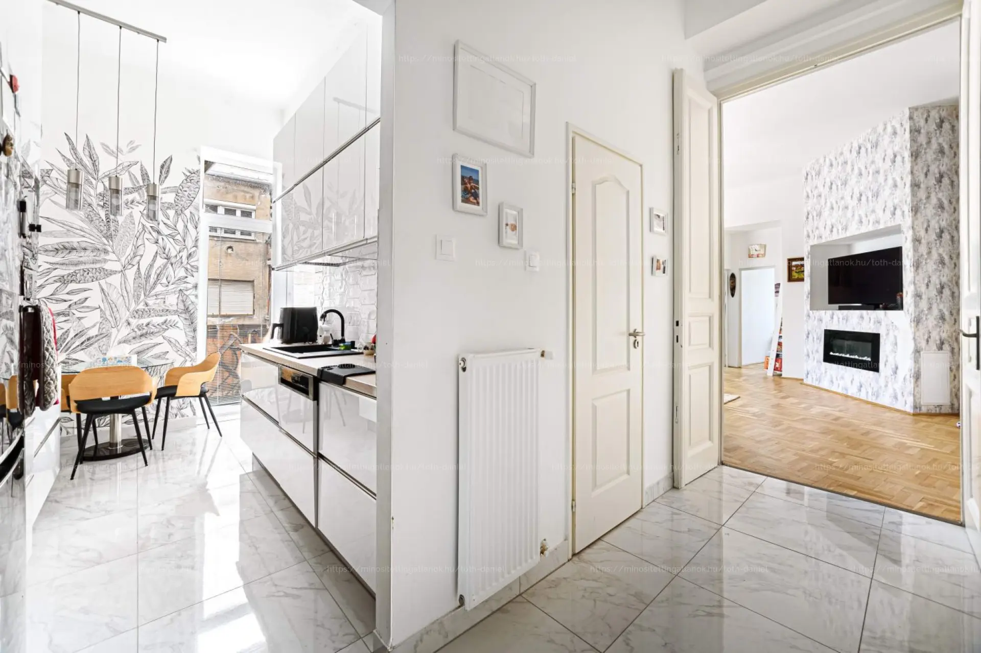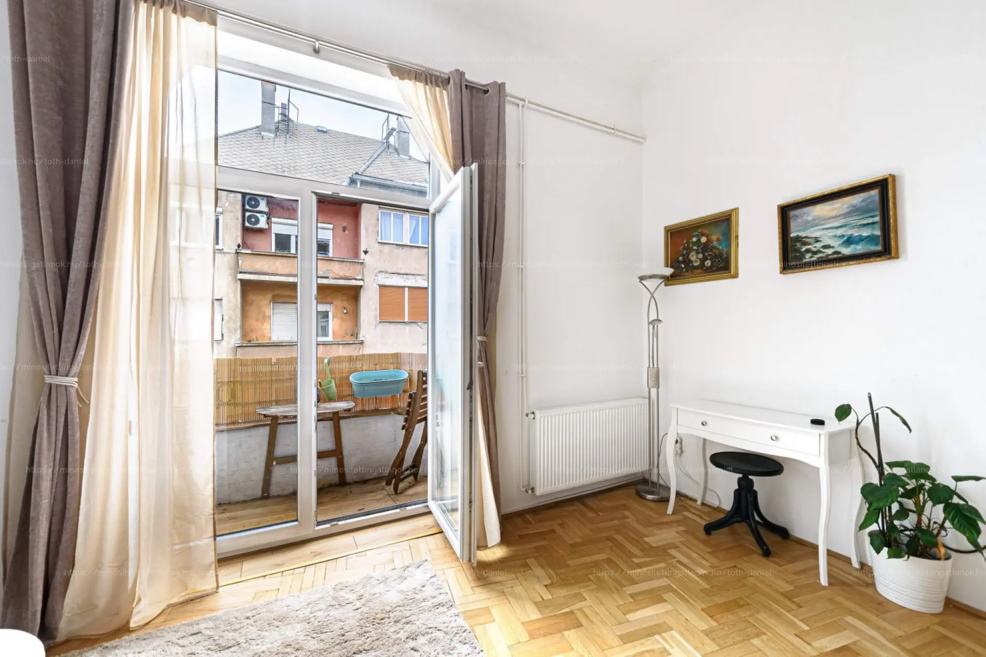 A magas emeleti fekvésnek köszönhetően a természetes fény zavartalanul árad be a lakás minden helyiségébe. A két erkély ideális helyszínt biztosít a reggeli kávé elfogyasztásához vagy a városi élet nyüzsgésének megfigyeléséhez.