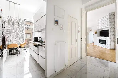 A magas emeleti fekvésnek köszönhetően a természetes fény zavartalanul árad be a lakás minden helyiségébe. A két erkély ideális helyszínt biztosít a reggeli kávé elfogyasztásához vagy a városi élet nyüzsgésének megfigyeléséhez.