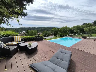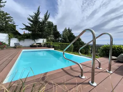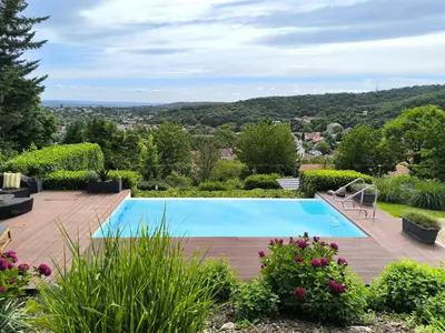 A kert valóban különleges: lépcsőzetes teraszos kialakítású, ideális kertészkedéshez, pihenéshez. Kiemelkedő eleme a 3x6 méteres Infinity medence, amely teljes gépészettel, világítással, hőszivattyús fűtéssel, és egy 26 m²-es napozóterasszal szolgálja a nyári kikapcsolódást. A házhoz tartozik egy 18 m²-es fedett terasz is, ami tökéletes helyszín baráti vagy családi összejövetelekhez.