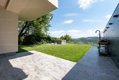 Panoráma a jacuzziból - és barátságos elegancia Adyliget exkluzív utcájában. Eladó egy luxus minőségben újjáépített ikerház látványos örökpanorámával, jacuzzival, infraszaunával, nagy garázzsal, hőszivattyús padlófűtéssel, egyedi belső kialakítással.