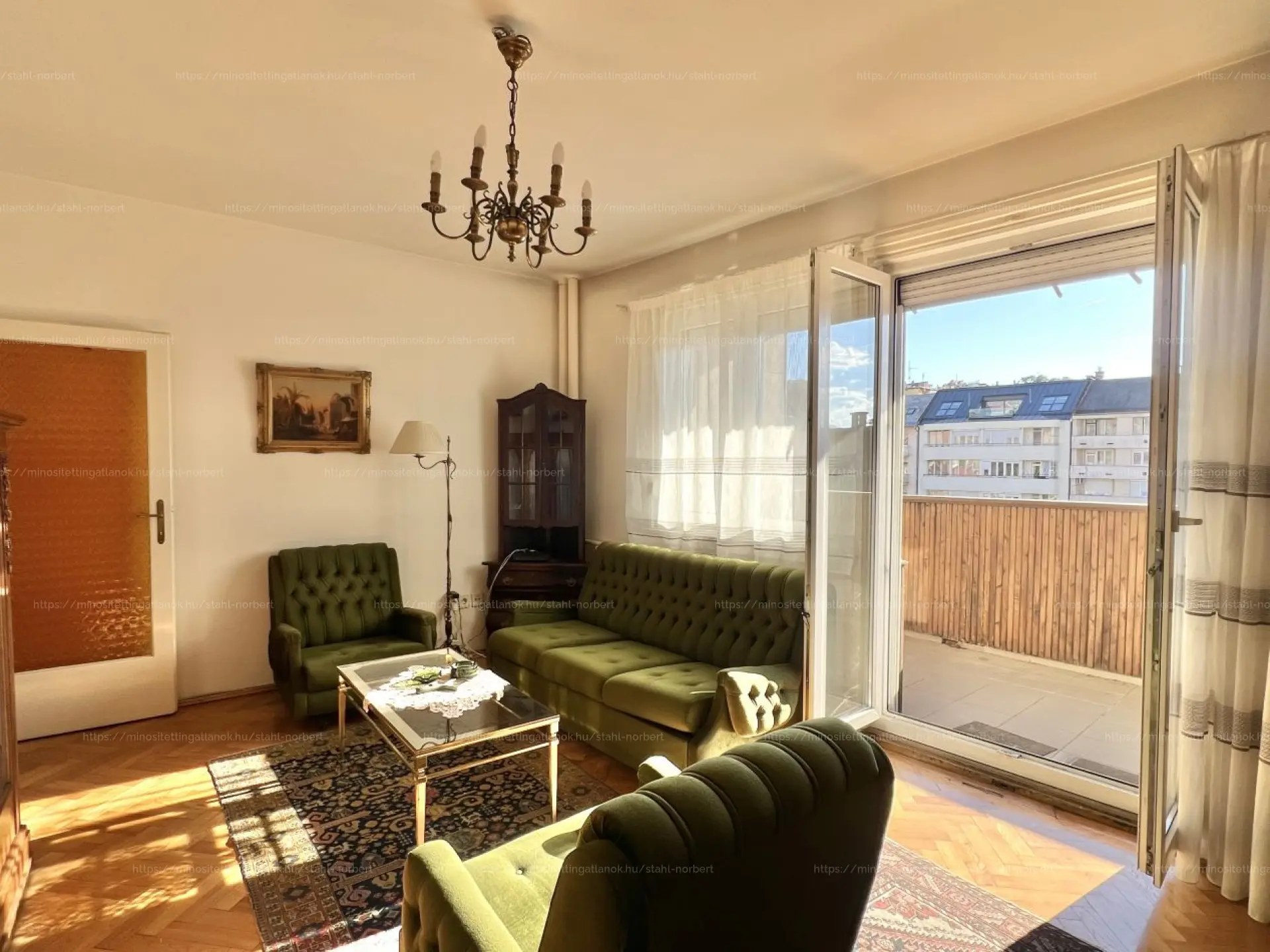 A lakás nappalijából egy 6 négyzetméteres erkély nyílik. Az erkélyről panorámás kilátás tárul elénk a  Krisztina téri templomra, a Gellért-hegyre és a  Budai-hegyekre. Folyosóról nyílnak külön a helyiségek. Külön a nappali és hálószoba, konyha külön kamrával, fürdőszoba káddal, valamint külön WC található. A lakás 20 éve lett felújítva, ezért korszerűsítésre szükség van. Az ingatlanban műanyag, hangszigetelt nyílászárók kerültek beépítésre, minden ablak redőnnyel felszerelt. A padlóburkolat valódi tölgyfa parketta, halszálka mintázattal, kifogástalan állapotban.