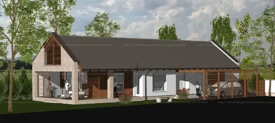 Veresegyház központjához közel, békés, megközelíthető helyen épül egy egyszintes, korszerű, energiatakarékos családi ház, 698 m²-es telken fekszik.