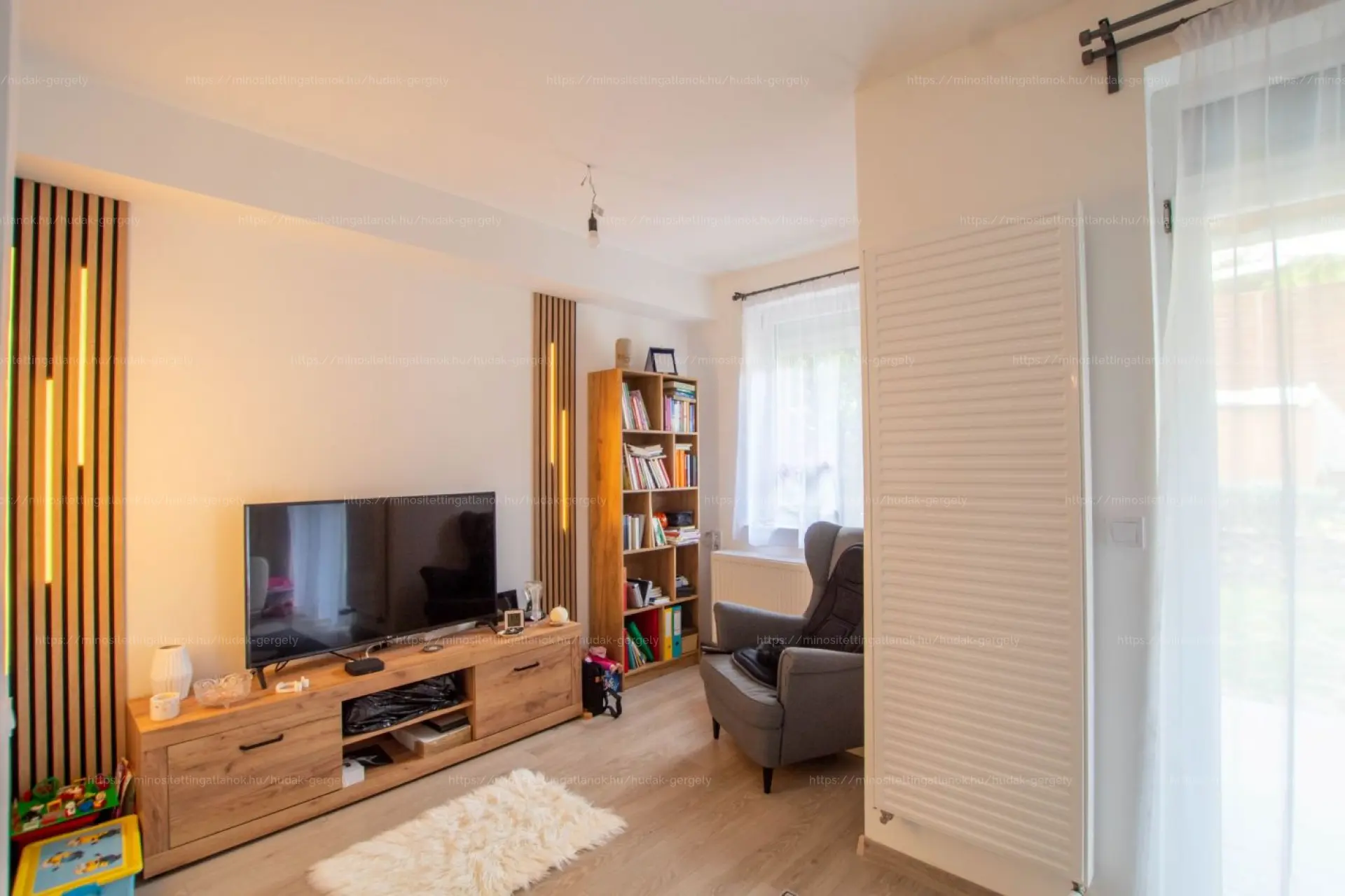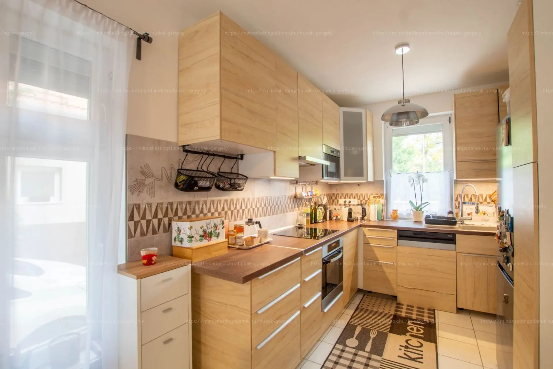 Eladó Fóton, a város legnívósabb részén, Királydombon egy 2013- ban épült, de frissen felújított és kis mértékben átalakított, gyönyörű, újszerű állapotban lévő, 87 m2 nettó alapterületű, szélső sorházi lakás saját, szeparált, 200 m2- es kerttel. Jogilag rendezett, tehermentes, 1/1 tulajdon, önálló helyrajzi számmal rendelkezik.