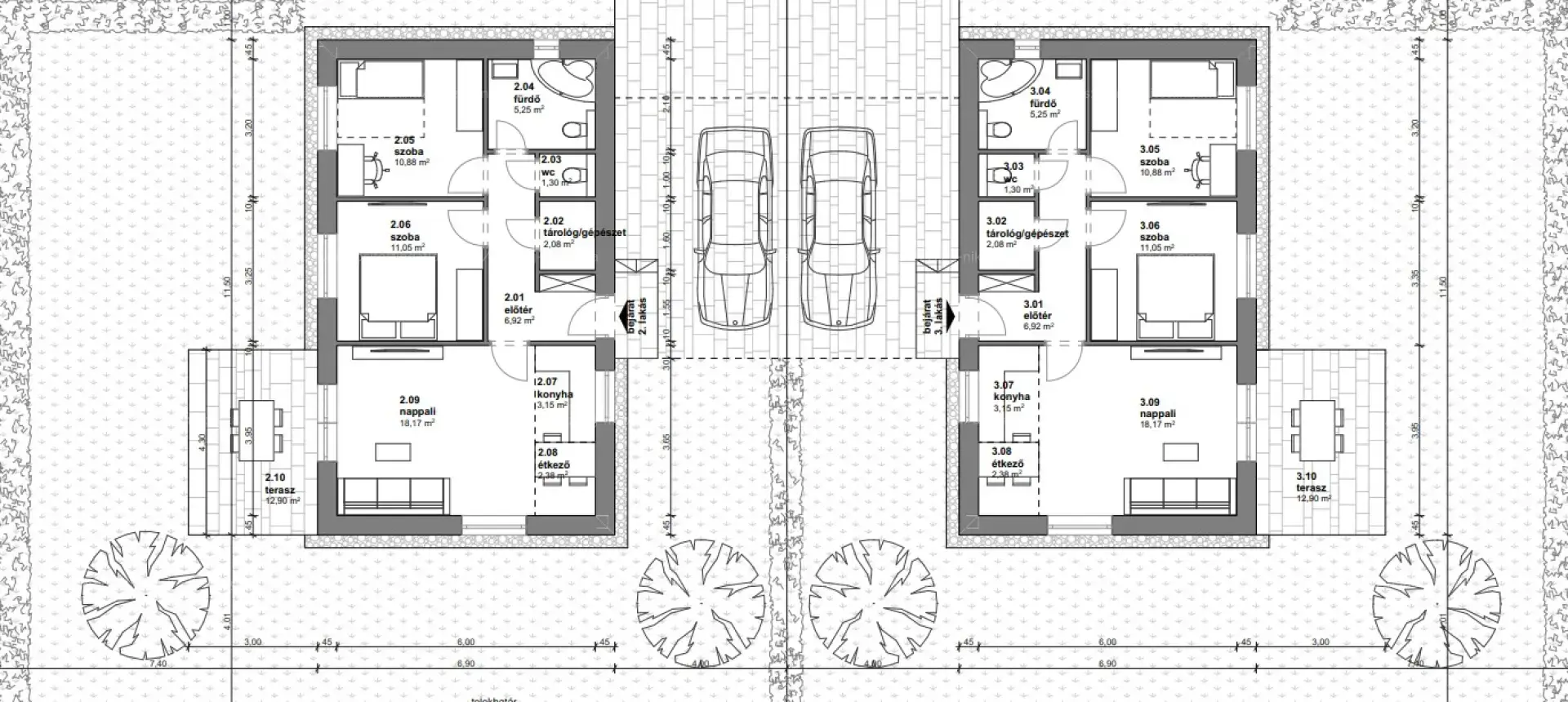 Az ár tartalmazza a 3D kerítést, a tereprendezést és a felszíni gépkocsi-beállót.