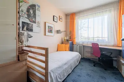 A szobák összeköttetését egy tágas folyosó biztosítja - innen nyílnak a hálószobák, a nappali, valamint a fürdőszoba és egy külön WC.