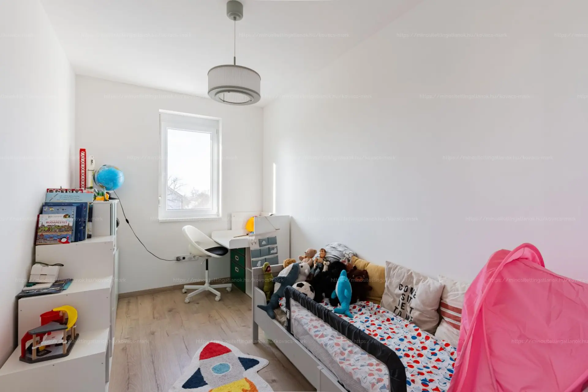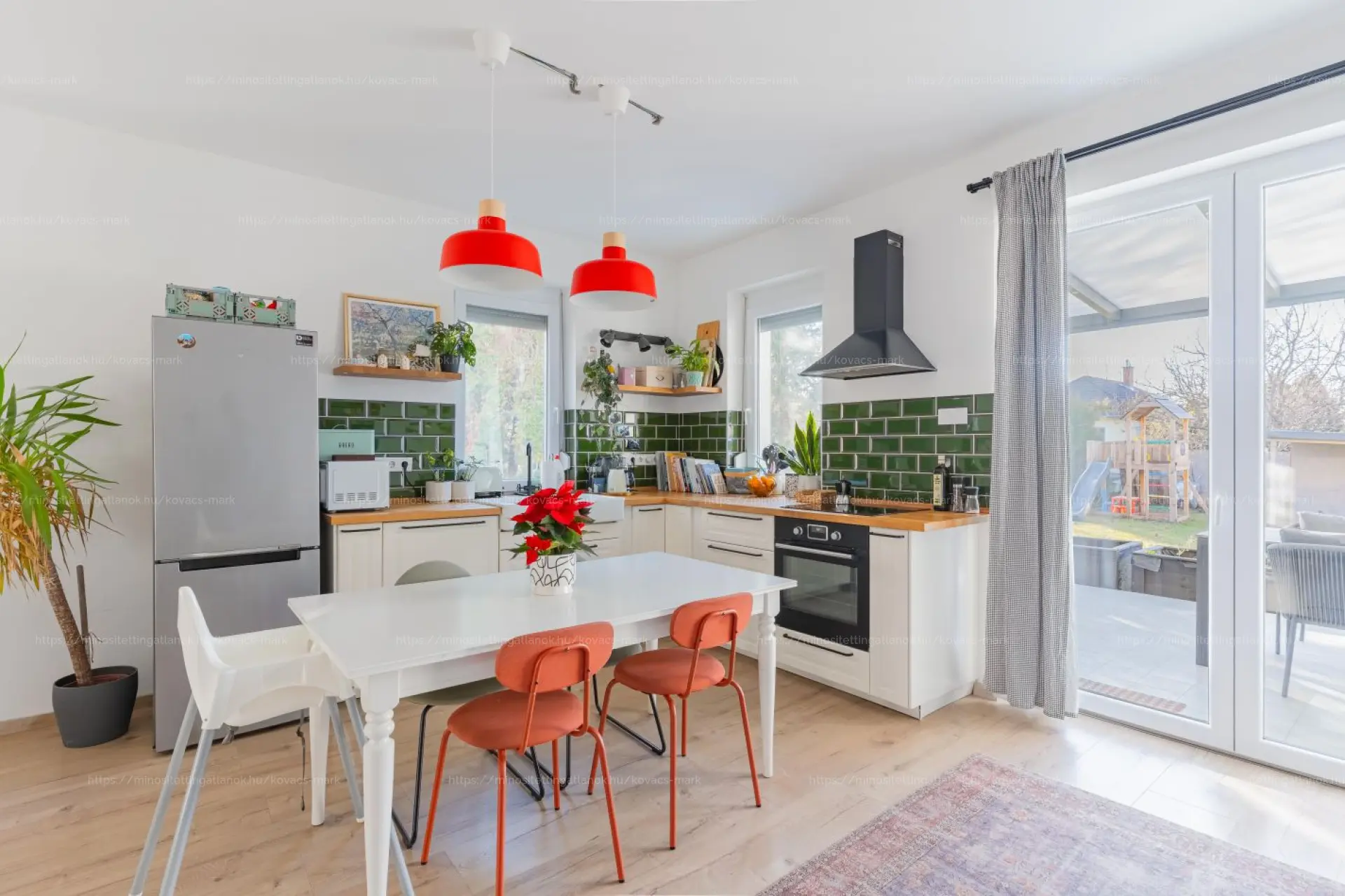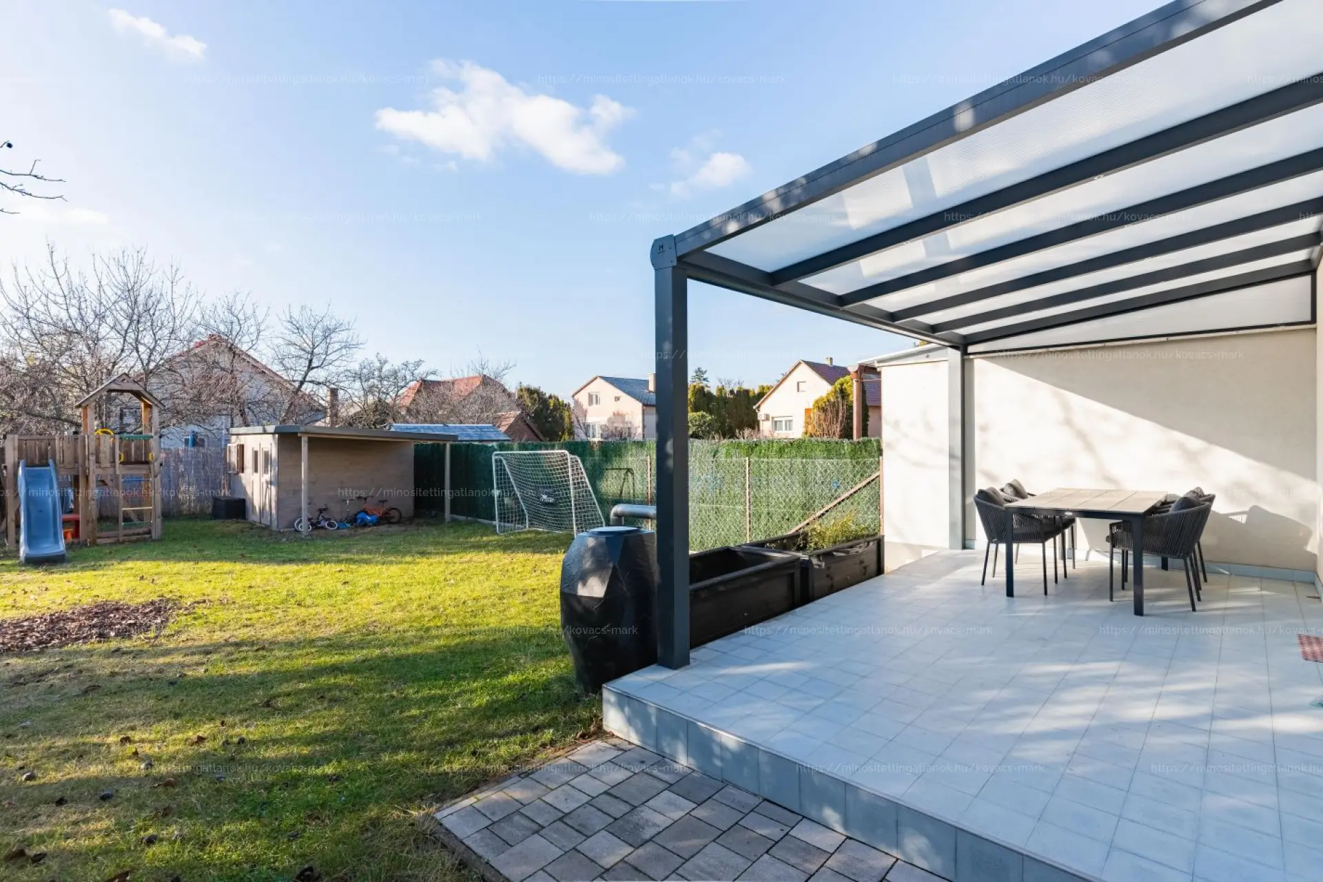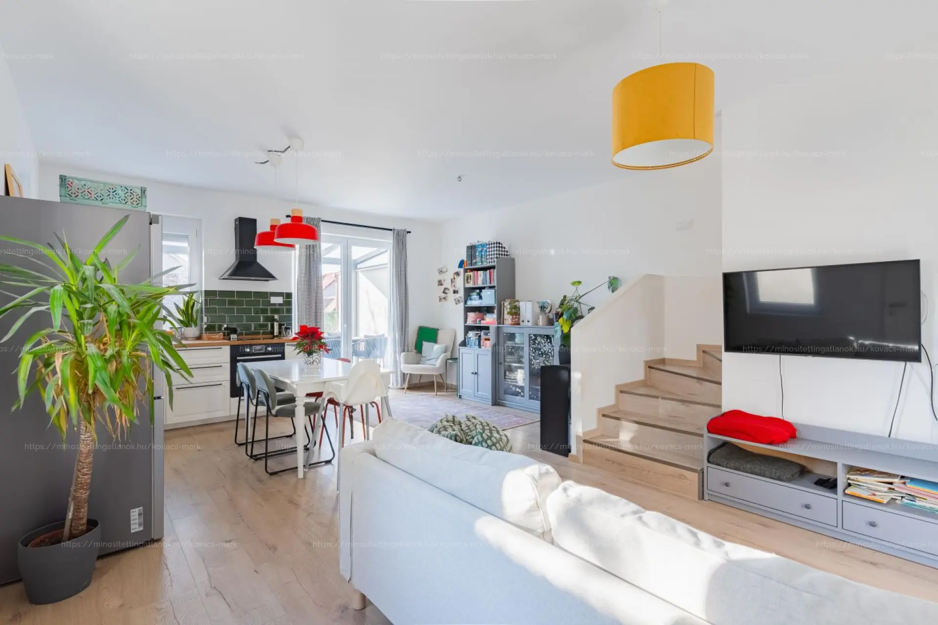 XVII. kerületben, Rákoskerten, csendes mellékutcában, 2020-ban épült, 100nm-es, belső kétszintes, amerikai konyhás nappalival, lenti wc-vel, 3db emeleti hálószobával, emeleti kádas fürdőszobával, garázzsal rendelkező ikerházfél 320nm-es kerten eladó.