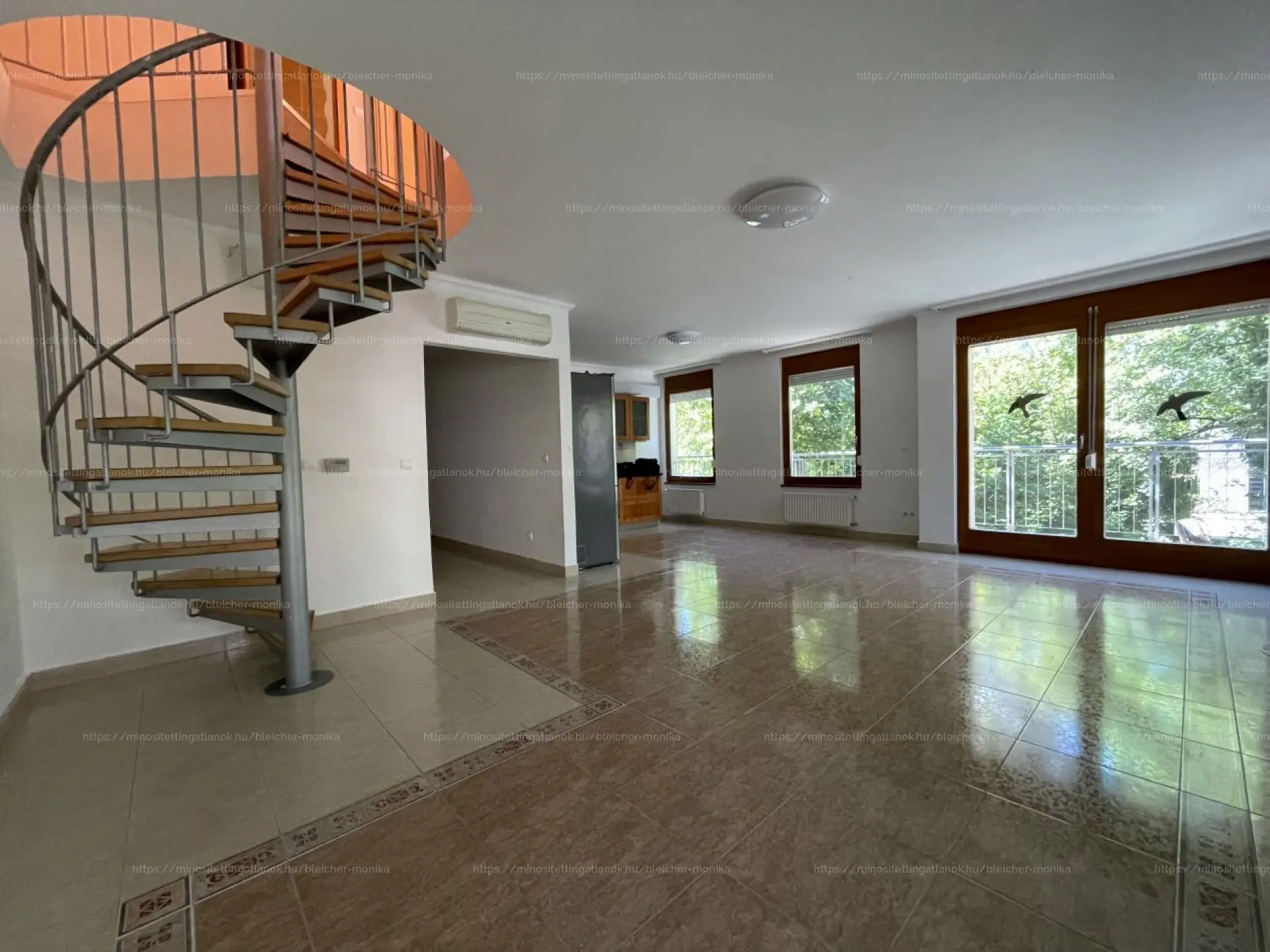 HŰVÖSVÖLGYI ÚTRA MERŐLEGES CSENDES UTCÁBAN A KÍNAI ISKOLA KÖZELÉBEN 2004 ÉPÍTÉSŰ LIFTES HÁZBAN MÁSODIK EMELETI HÁROM SZOBÁS LAKÁS ELADÓ. A közlekedés kiváló, a környéken több iskola, óvoda és bölcsőde található. A közelben természeti területek, sétautak és játszóterek várják a lakókat. Kávézók és éttermek a környéken. Az épület háromszintes, a pince szinten teremgarázs beállók és tárolók találhatók. A lift a teremgarázsig jár. A belső kétszintes kialakítású lakásba lépve az előszobából nyílik a hálószoba és a fürdő, valamint a tágas nappali és konyha részből elhúzható teljes üveg ajtón át léphetünk ki a 14 m2 teraszra. A felső szinten egy plusz szoba és fürdő található, továbbá egy 52 m2 nagy terasz, amely tavasztól őszig különösen hangulatos. A lakás fűtését gáz cirkó rendszer biztosítja, mindkét szinten légkondicionáló található. A lakás napfényes, borult időben is világos. Beálló és 3 m2 tároló együttesen 10 millió forintért eladó. További kérdés esetén várom hívását