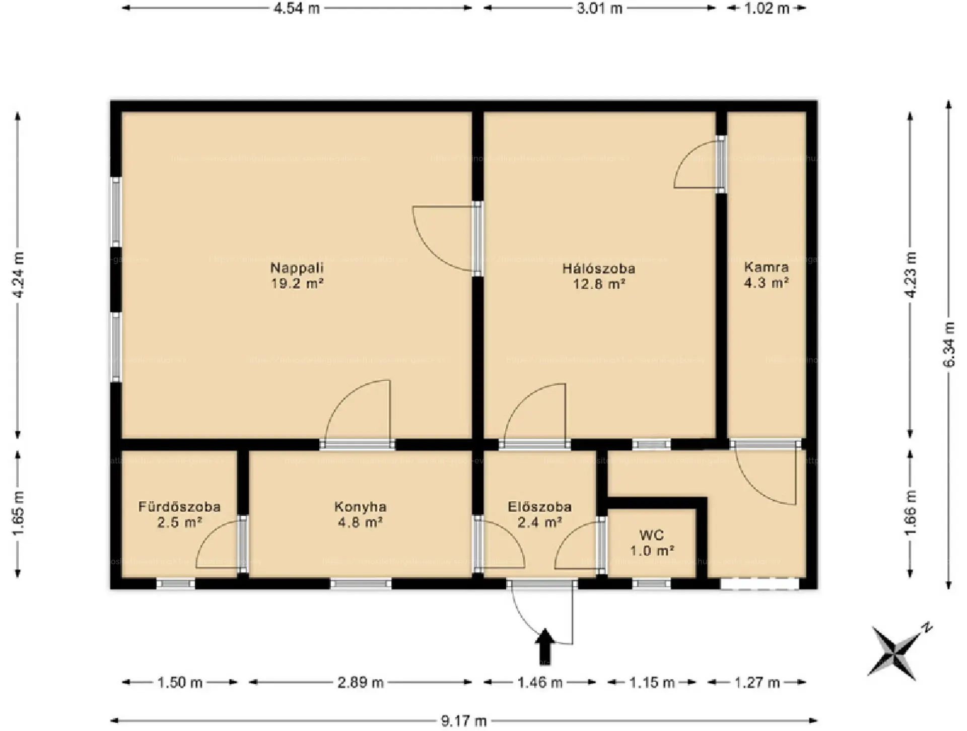 ✅ 49 nm (Nappali, hálószoba, konyha, fürdőszoba, WC, Kamra)
