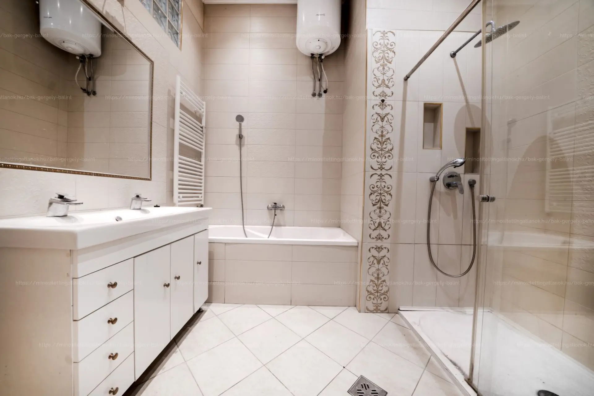 Az ingatlan alapterülete 97 m2, két külön bejárattal rendelkezik. Az egyik bejárat a zárt lépcsőházból, a másik a függőfolyosóról nyílik. Egyetlen közvetlen oldalszomszédja van. A lakás kétfelé lett osztva. Az egyik lakrész 71m2, két utcai nézetű szobából, konyhából, kádas és zuhanyzós fürdőszobából és külön wc-ből áll. A másik lakás 26 m2, konyhás étkezőből, hálószobából és zuhanyzós fürdőből áll.