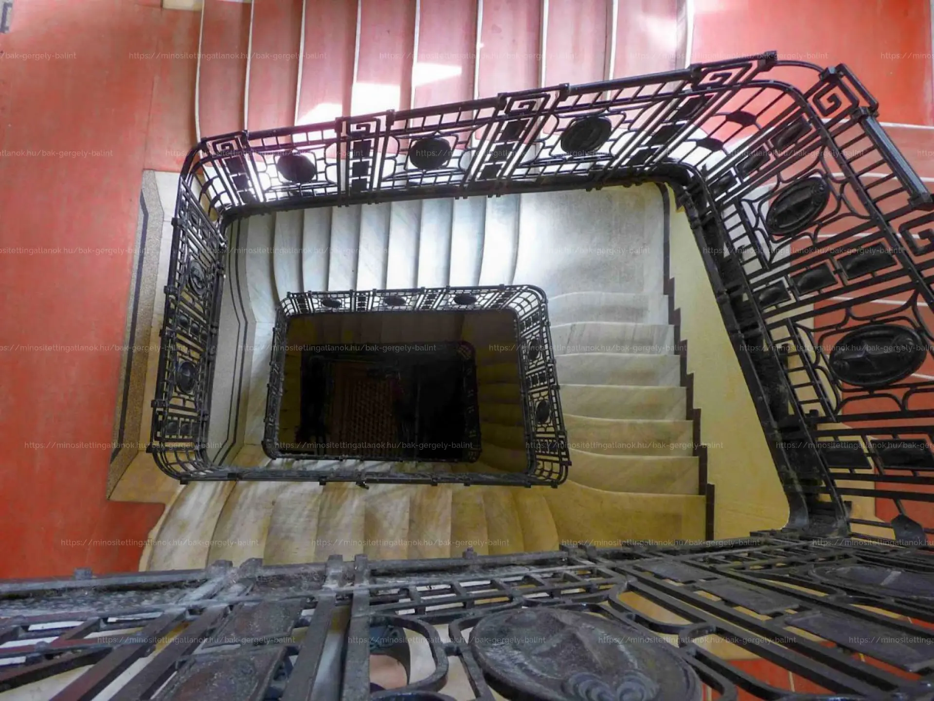 The residential building was designed by architects Sámuel Révész and József Kollár. Located on the corner of Régiposta Street, above McDonald’s, its Art Nouveau façade deserves a closer look — every detail and ornament is fascinating. Each floor is decorated with different stylized human and animal heads and full figures. The strong vertical divisions, geometric forms, and ornaments — including the giant Atlases — show clear influence of German Jugendstil. Next to it stands the colorful Thonet House by Ödön Lechner, which had already been built at that time. The hexagon-patterned tiles date from the same era, as well as the beautiful wrought-iron elevator shaft and railing on the side staircase, and the very photogenic main staircase, part of which still has its original rubber flooring and stunning banisters.