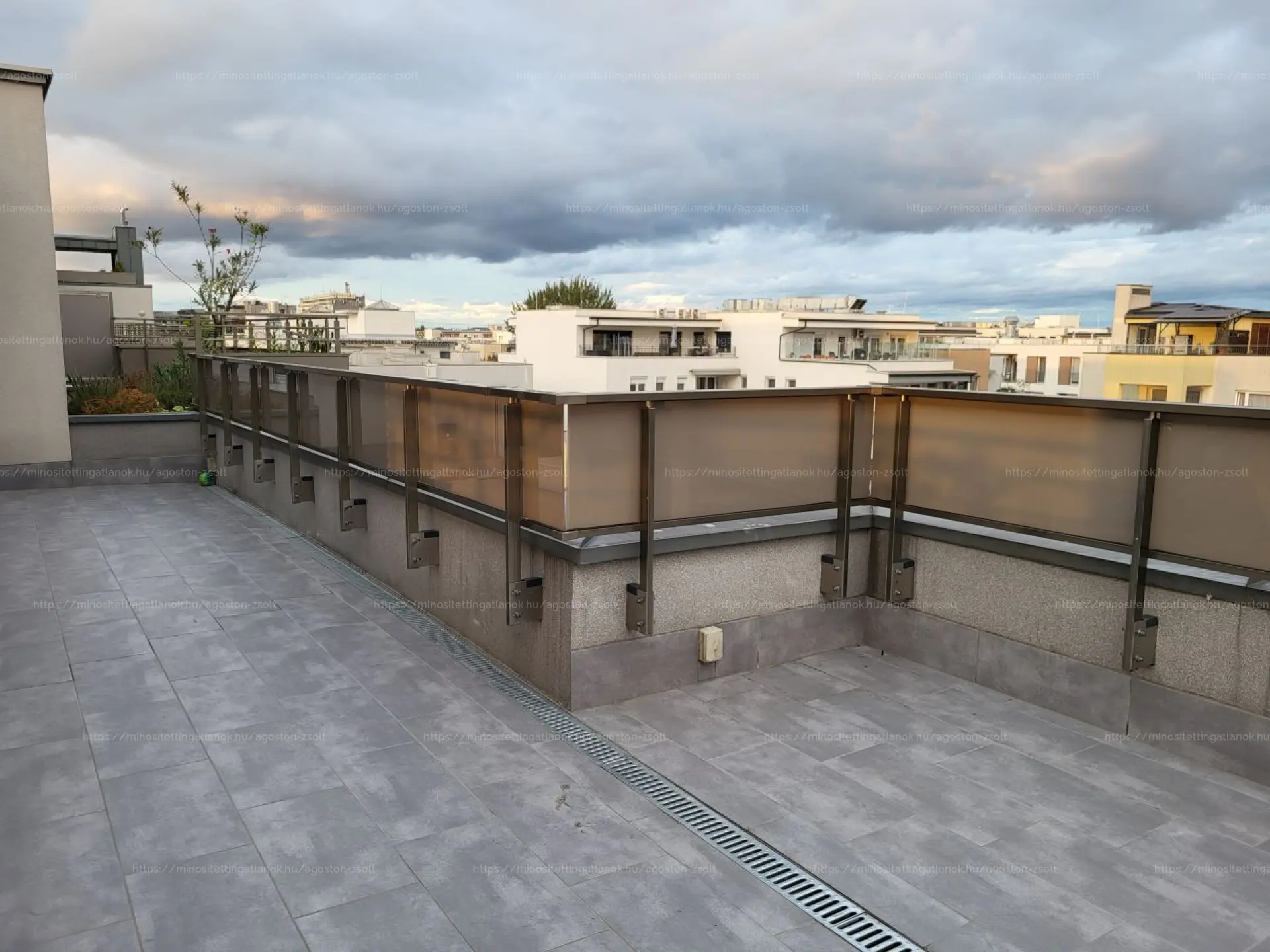 A lakás legjobb vonása, az 59 négyzetméteres, jól élhető és bútorozható terasza, amiben akár egy jó családi grill és még egy jakuzzi is helyet kaphat, hiszen a teraszon önálló vízvételi lehetőség és áram is rendelkezésre áll. Ezen felül 50 négyzetméteres tetőkertben is élvezhetjük a kilátást, de akár kiskertet is berendezhetünk kedvenc fűszernövényeinknek.