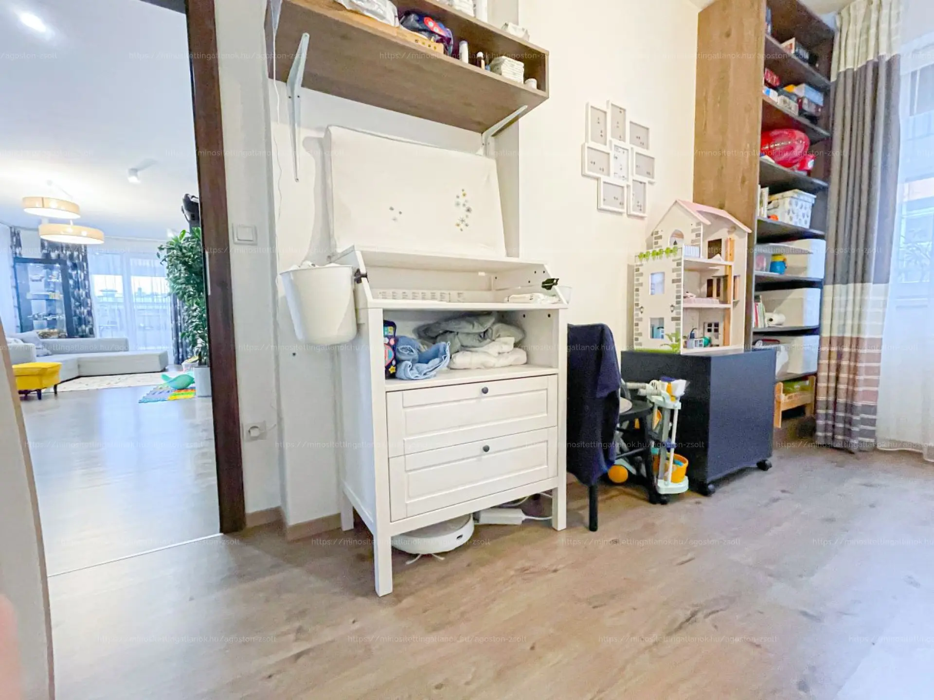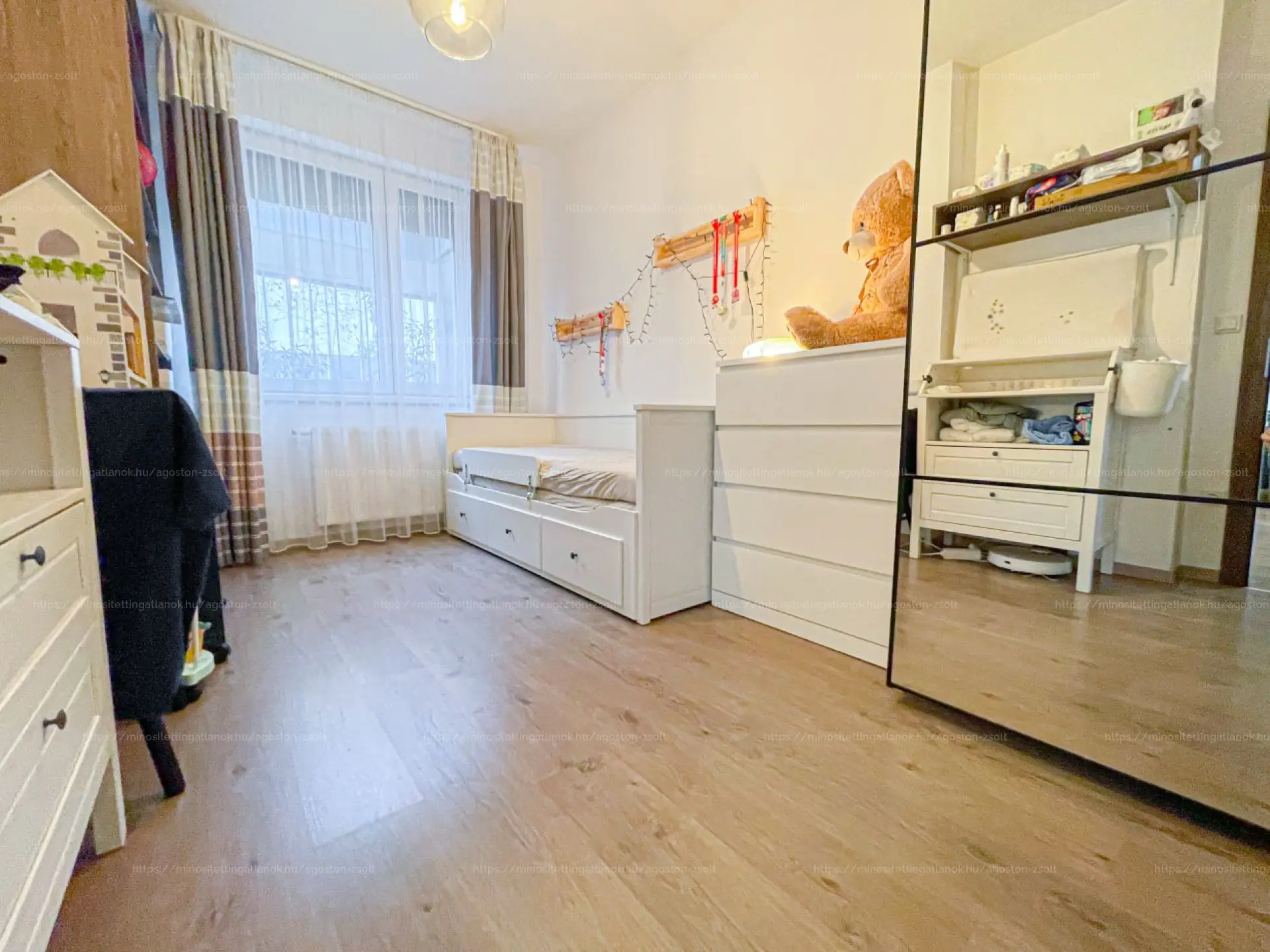 A lakás alaprajza kiváló, a helyiségei funkcióként jól elkülönülnek. Felső emeleti lakásként, és annak köszönhetően hogy az összes oldalon nagy ablakok vannak, így egy kivételesen világos, napfényes lakás.