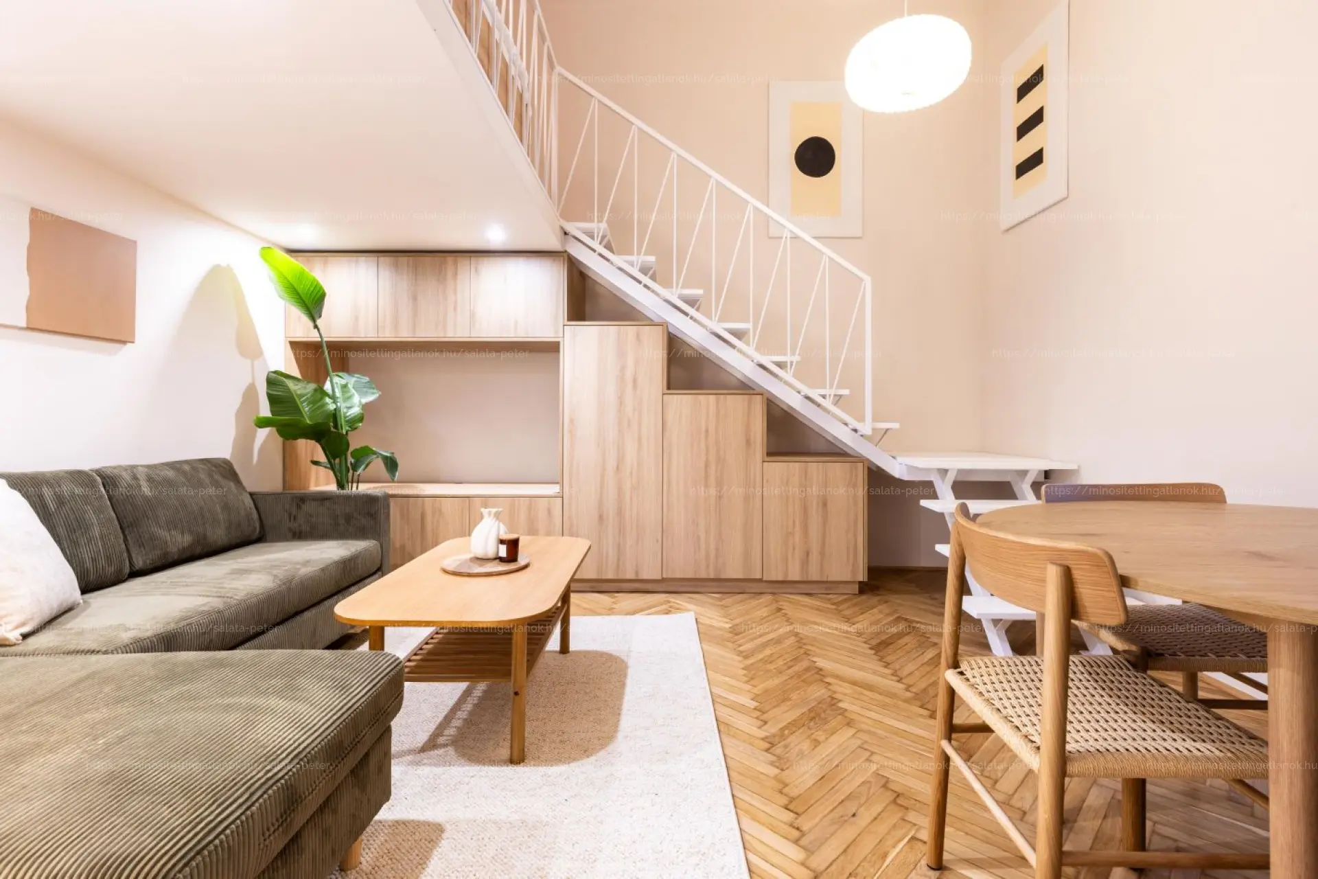 Kiadó a belváros egyik legkedveltebb részén, a Zichy Jenő utcában egy galériás, teljesen bútorozott és gépesített garzonlakás, amelyet lakberendező álmodott meg, tapasztalt kivitelezők kivitelezésében. Nem ez az első hasonló munkájuk, így minden négyzetmétert a lehető legpraktikusabban használtak ki.