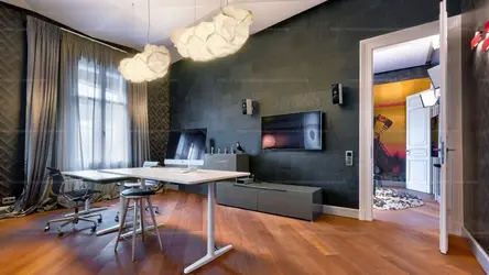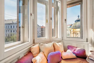 A lakás a Víg színház mellett helyezkedik el közvetlenül. Dél-Nyugati tájolása van, így napsütéses, világos. Csendes, mivel 3. emeleti, és az elhelyezkedése is a legkiválóbbnak mondható. Az V. és XIII. kerület határa, a Nyugati, West End és a Dunapart közelében.