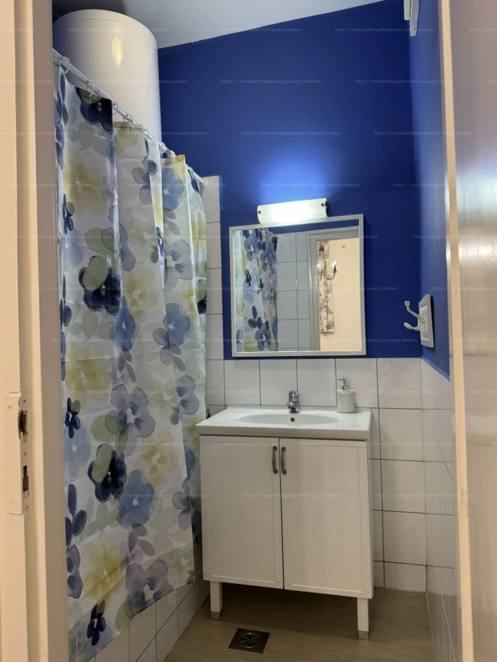- a hálószobából nyílik a kádas fürdőszoba — falainak mélykék árnyalata 💙 Gauguin festményeire reflektál; a virágos akvarell zuhanyfüggöny és a gyertyafényes esti fürdők itt különösen hangulatosak ✨🛁